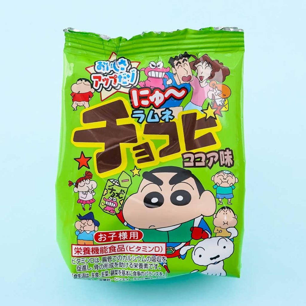 Ramune is a popular Japanese carbonated soft drink. Enjoy snacking on this pack of yummy star-shaped ramune candy featuring prints of Crayon Shin-Chan characters. They all have a yummy cocoa flavor!