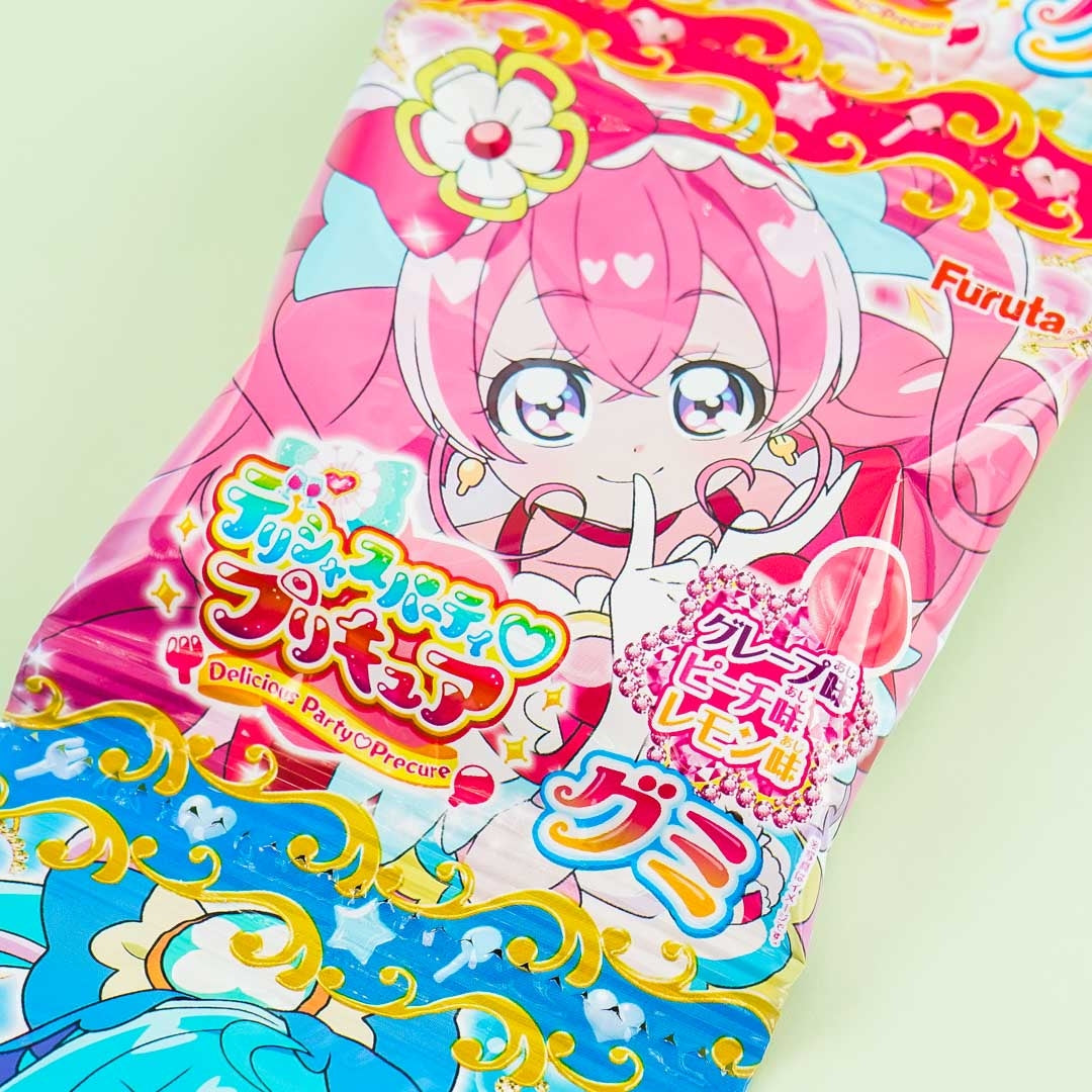 This set of gummy candy packs is illustrated with Delicious Party Pretty Cure characters. Relax and enjoy the refreshing grape, peach, and lemon flavors when you bite into these yummy treats!