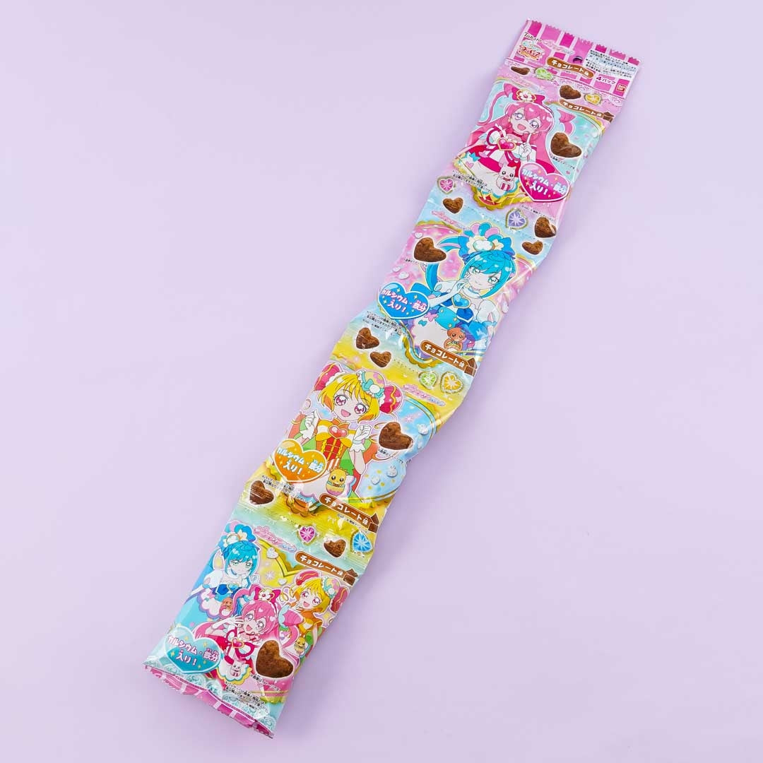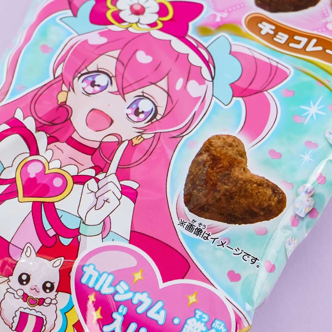 This set of heart-shaped choco snacks features prints of characters from the 19th Pretty Cure animated series, Delicious Party! Share these tasty treats with your anime friends!