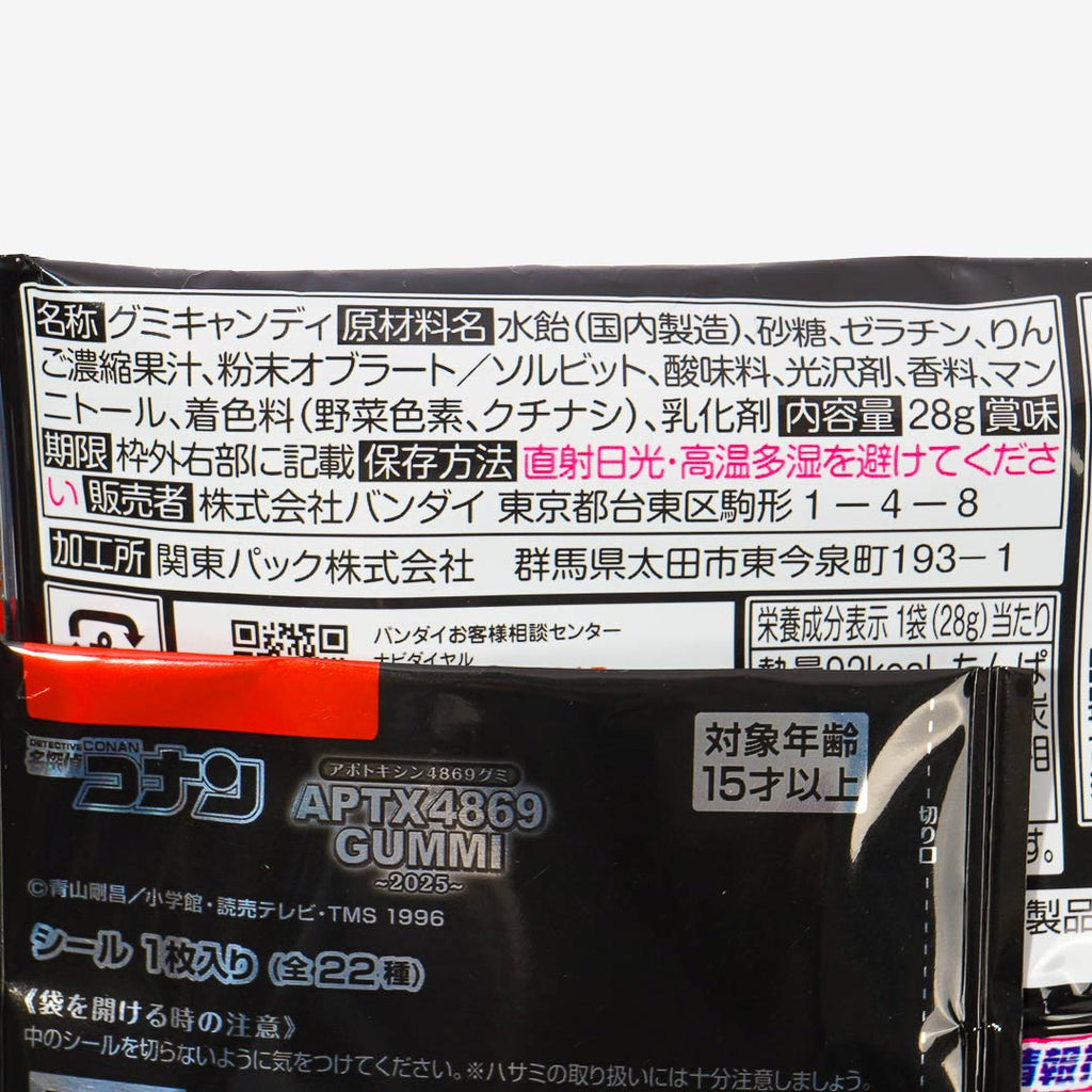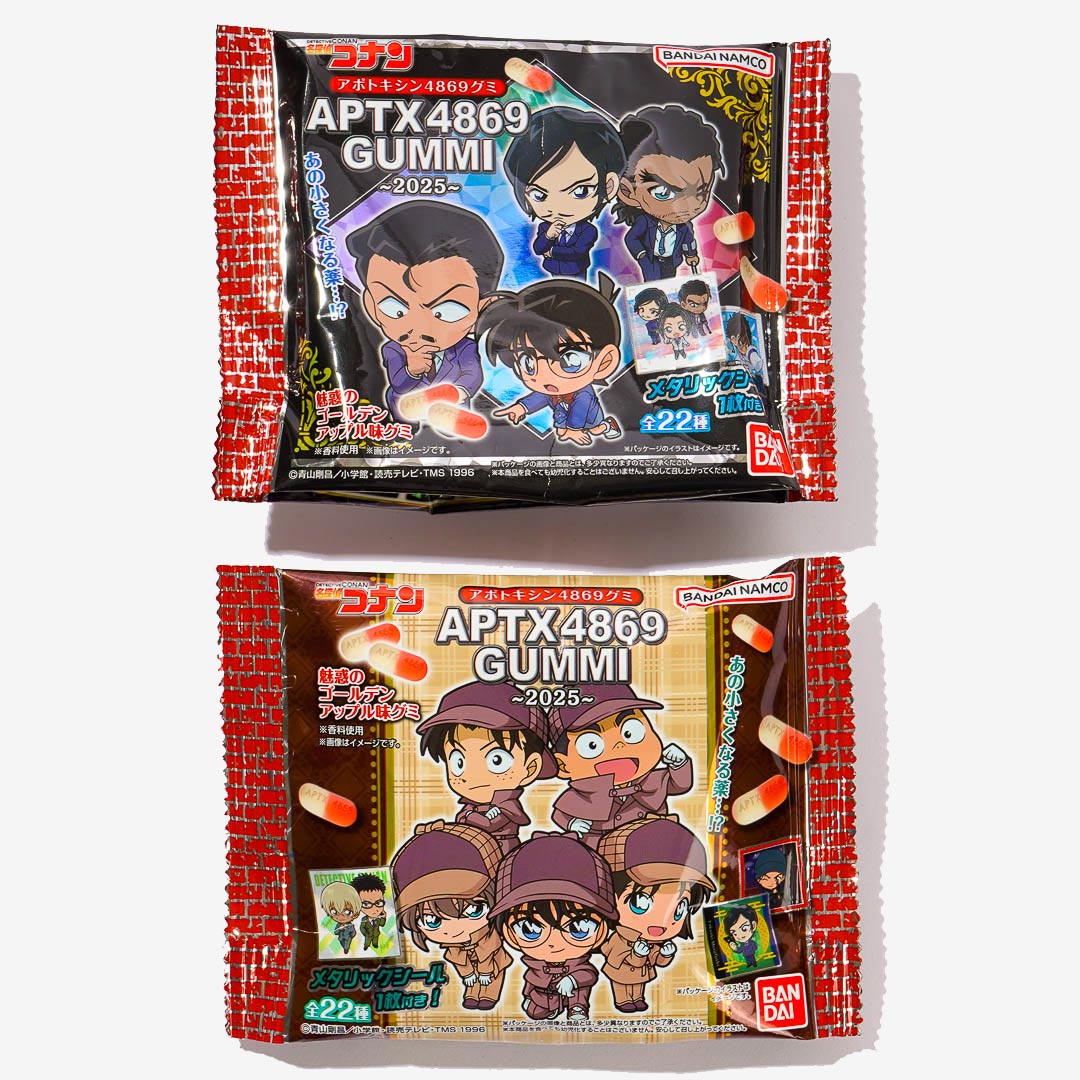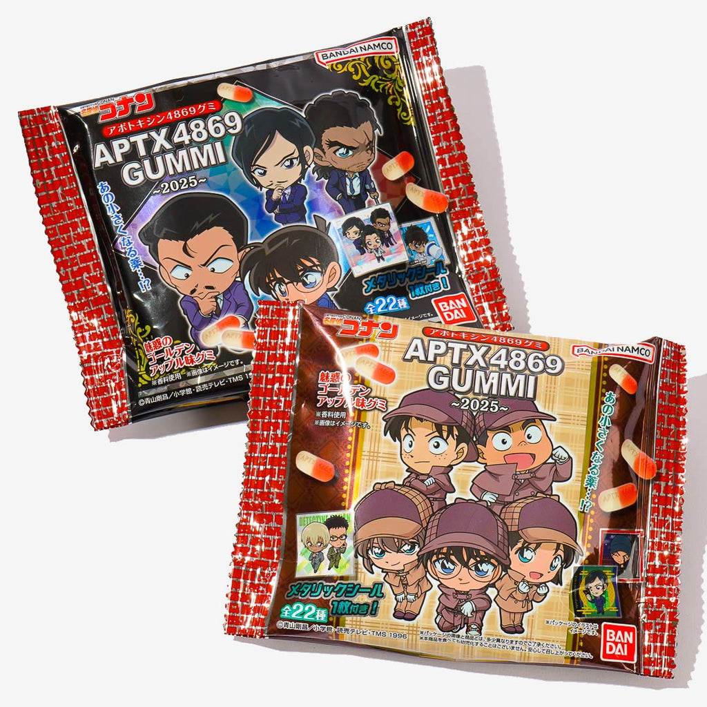 Crack the case with these capsule-shaped gummy candies! They're inspired by the mysterious APTX 4869 chemical from the anime Detective Conan. This pack includes a surprise metallic sticker featuring a chibi character from the series. Collect all 22 designs, including rare glittery ones!