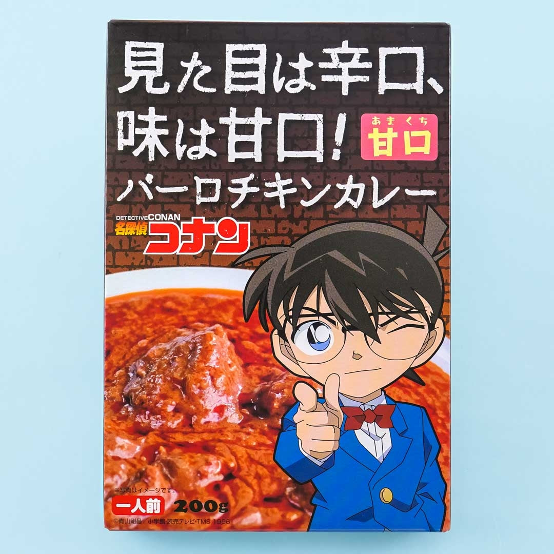 • A pack of sweet chicken curry sauce featuring a print of Detective Conan