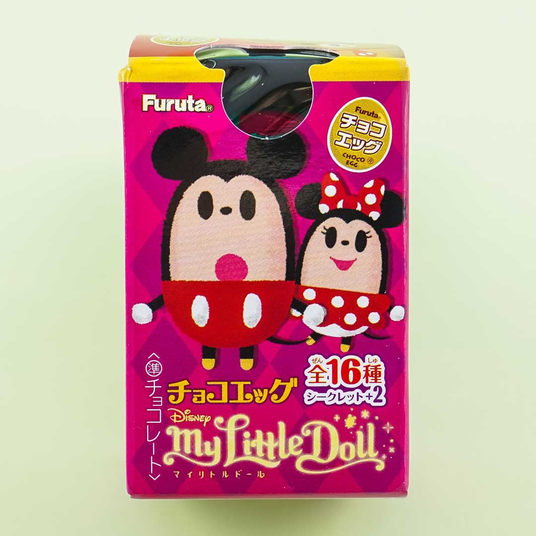 Enjoy unraveling a Disney figure inside this egg-shaped capsule coated with yummy milk chocolate! Collect all sixteen — plus two mystery characters from the new mobile phone game “Disney My Little Doll” where famous Disney characters were turned into oblong-shaped dolls. Surprise yourself as you get a random collectible when you order!
