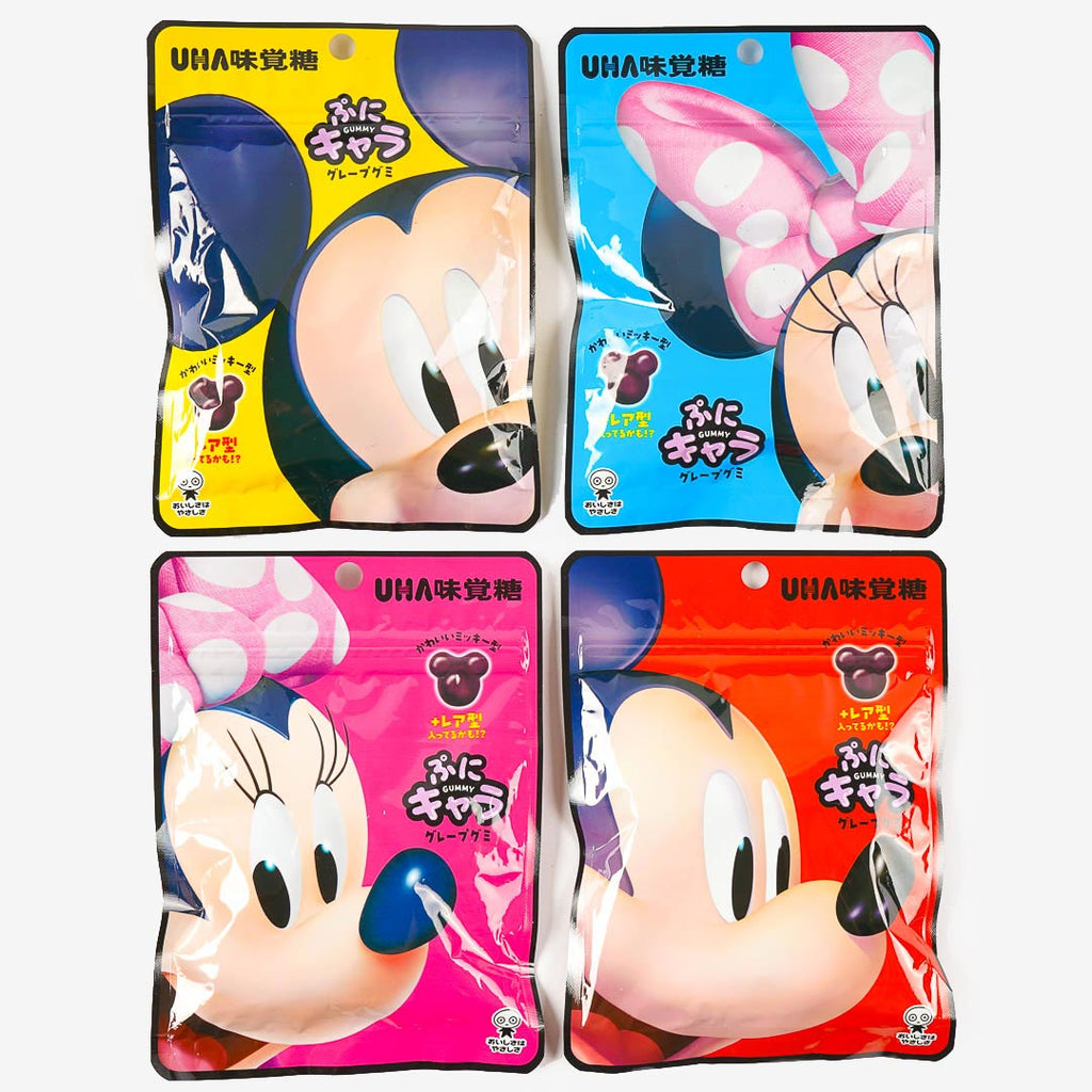 Enjoy these squishy grape-flavored gummies shaped like Mickey! It features one of four designs, two Mickey and two Minnie varieties. Along with the classic Mickey shape, you might also find a rare Mickey hand or an ultra-rare Minnie gummy!
