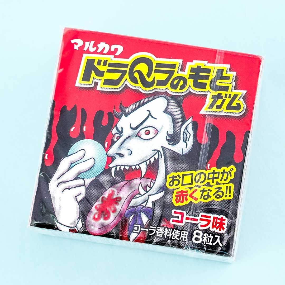 Turn yourself into a vampire by eating this box of yummy gum featuring prints of Dracula! These cola-flavored chewy treats might be as blue as the night but they turn your mouth red after chewing!
