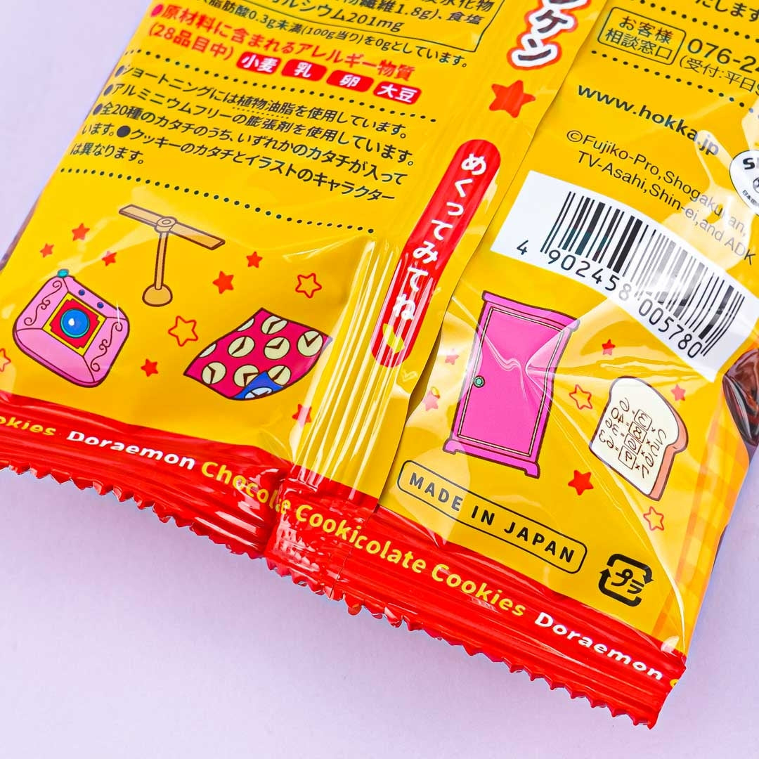 Enjoy munching on these delicious cookies! These crunchy snacks have a sweet chocolate flavor and come with twenty different designs featuring your favorite Doraemon characters and gadgets!