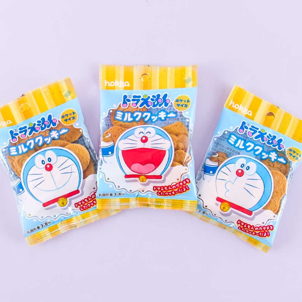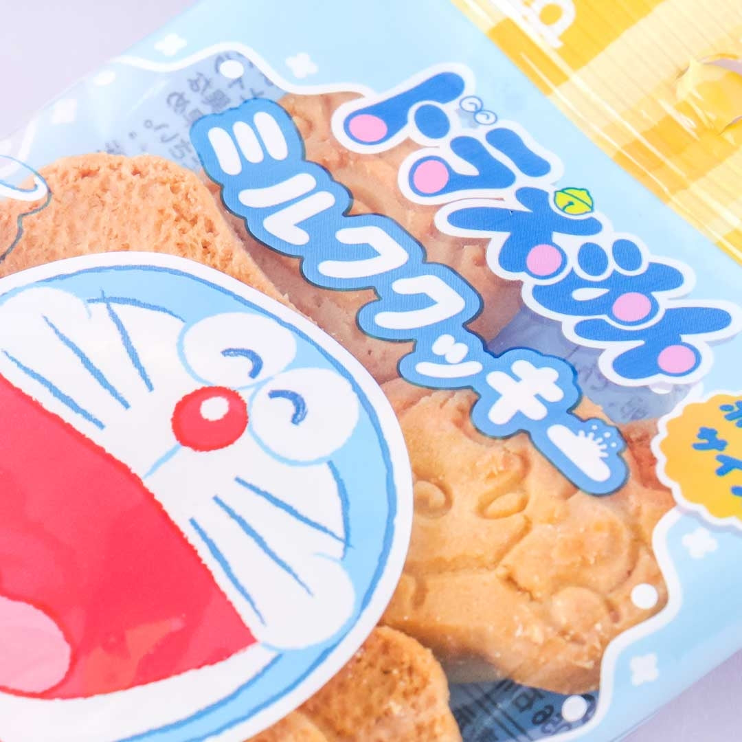 • A pack of milk cookies featuring an illustration of Doraemon making faces