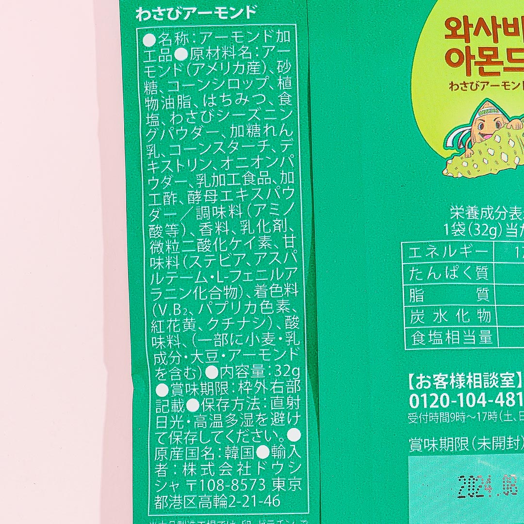 Add these almonds to your trail mix! Each almond is coated in wasabi powder. It's spicy with a slight hint of sweetness towards the end.