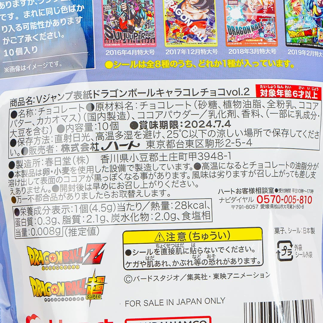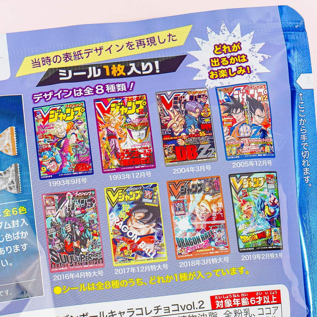 These delicious soft chocolate candies come in a package featuring illustrations of Dragon Ball! Six randomly selected packaging designs resemble a cover of V Jump, a popular Japanese manga magazine. You'll also get a bonus sticker with Dragon Ball illustrations!