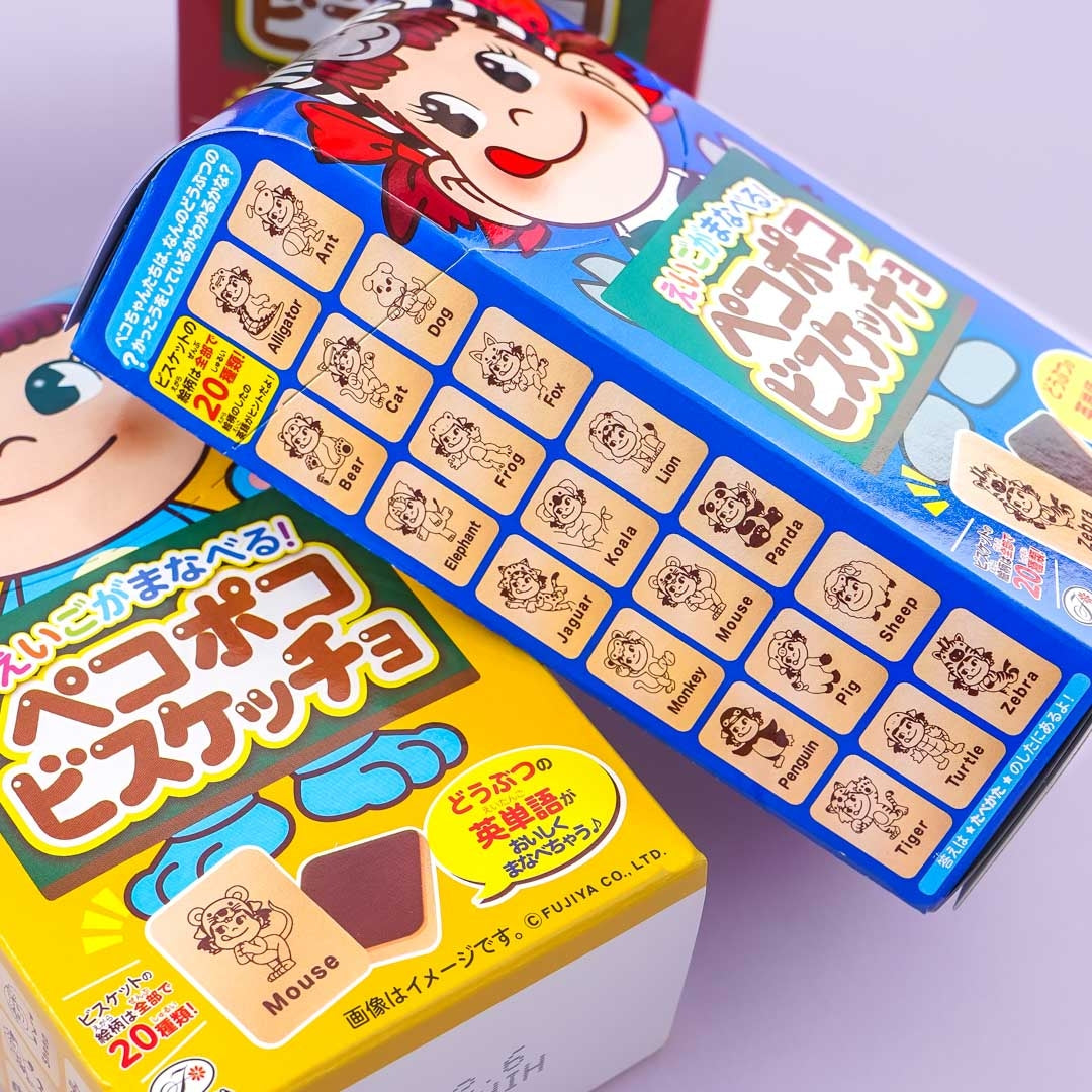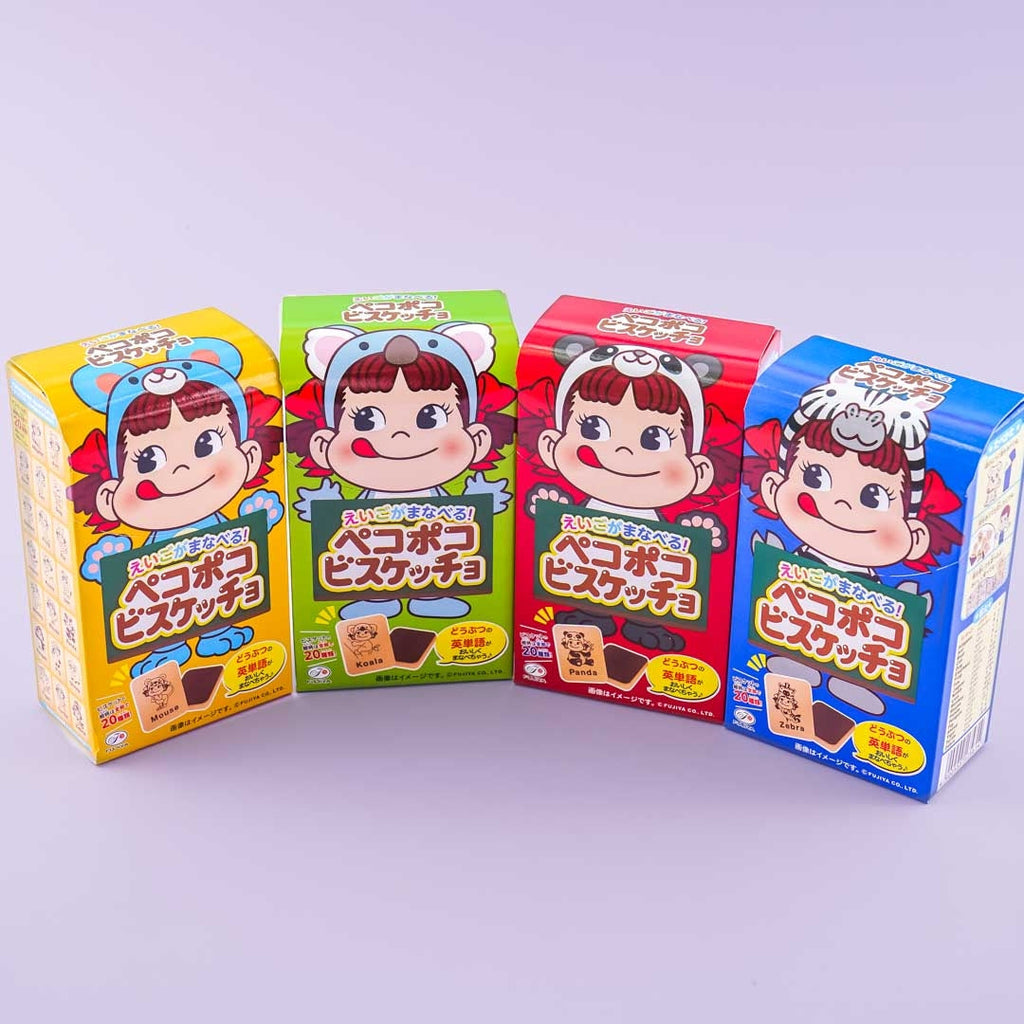 This box of chocolate-filled biscuits is the perfect snack time treat. Each biscuit features an illustration of Peko-chan wearing different animal costumes! Surprise yourself with a random package design when you order.