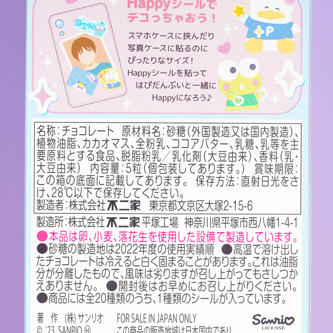 Satisfy your sweet tooth with this box of whipped chocolate candies! Each chocolate comes in individual packaging featuring prints of Hapidanbui. This box also contains a free sticker that you can put on the back of your smartphone!