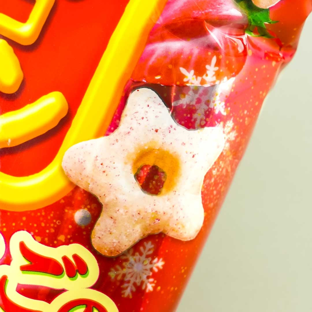 • A limited-edition pack of star-shaped corn puff snacks covered in strawberry shortcake-flavored white chocolate