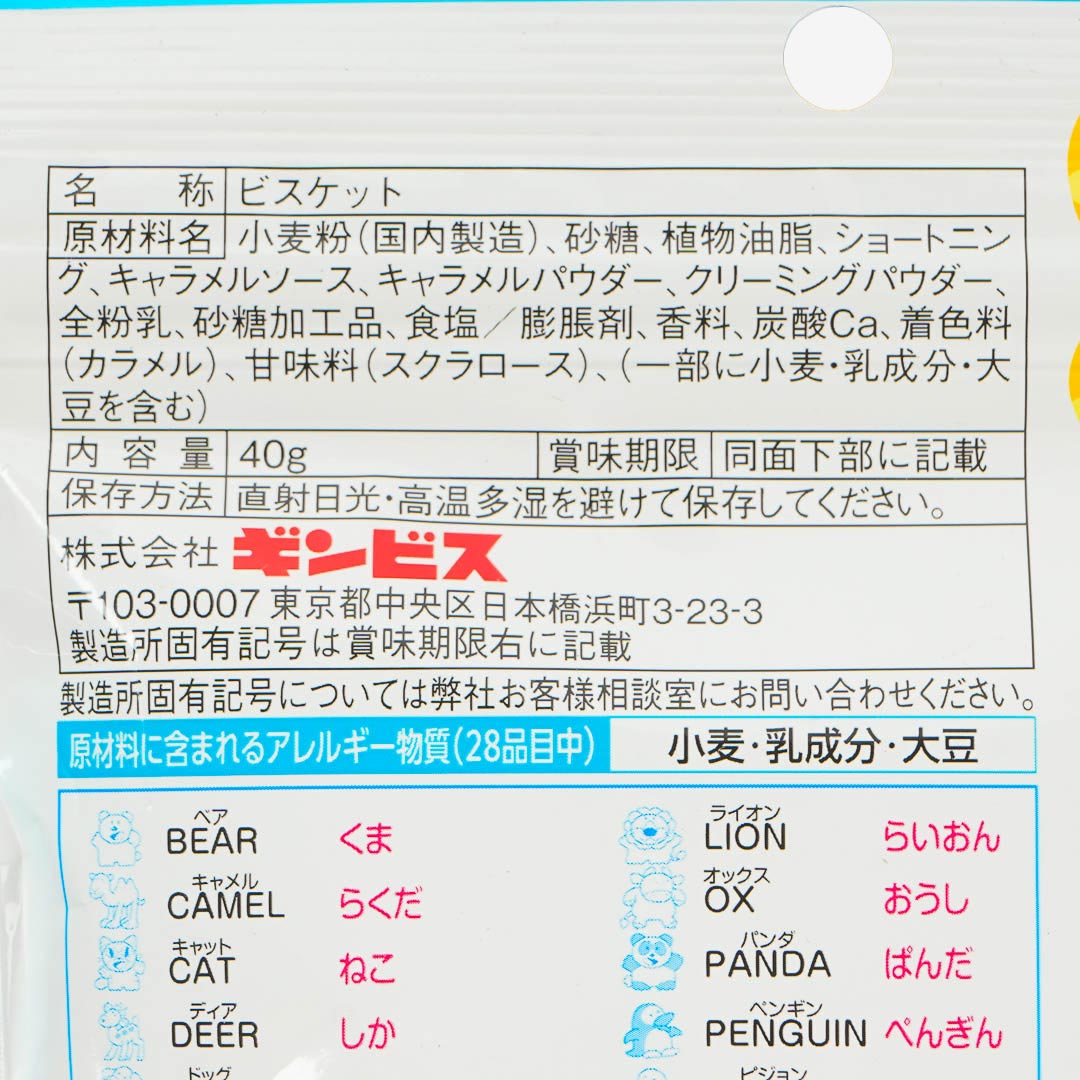 Snack on these mini biscuits with a buttery caramel flavor! Each cookie comes in a cute animal shape with its English name printed. Enjoy them straight from the bag or sprinkle them over ice cream!