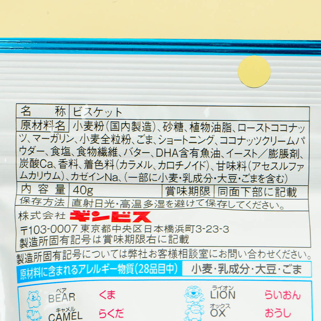 Ginbis Tabekko Animal Biscuits - Coconut Milk
