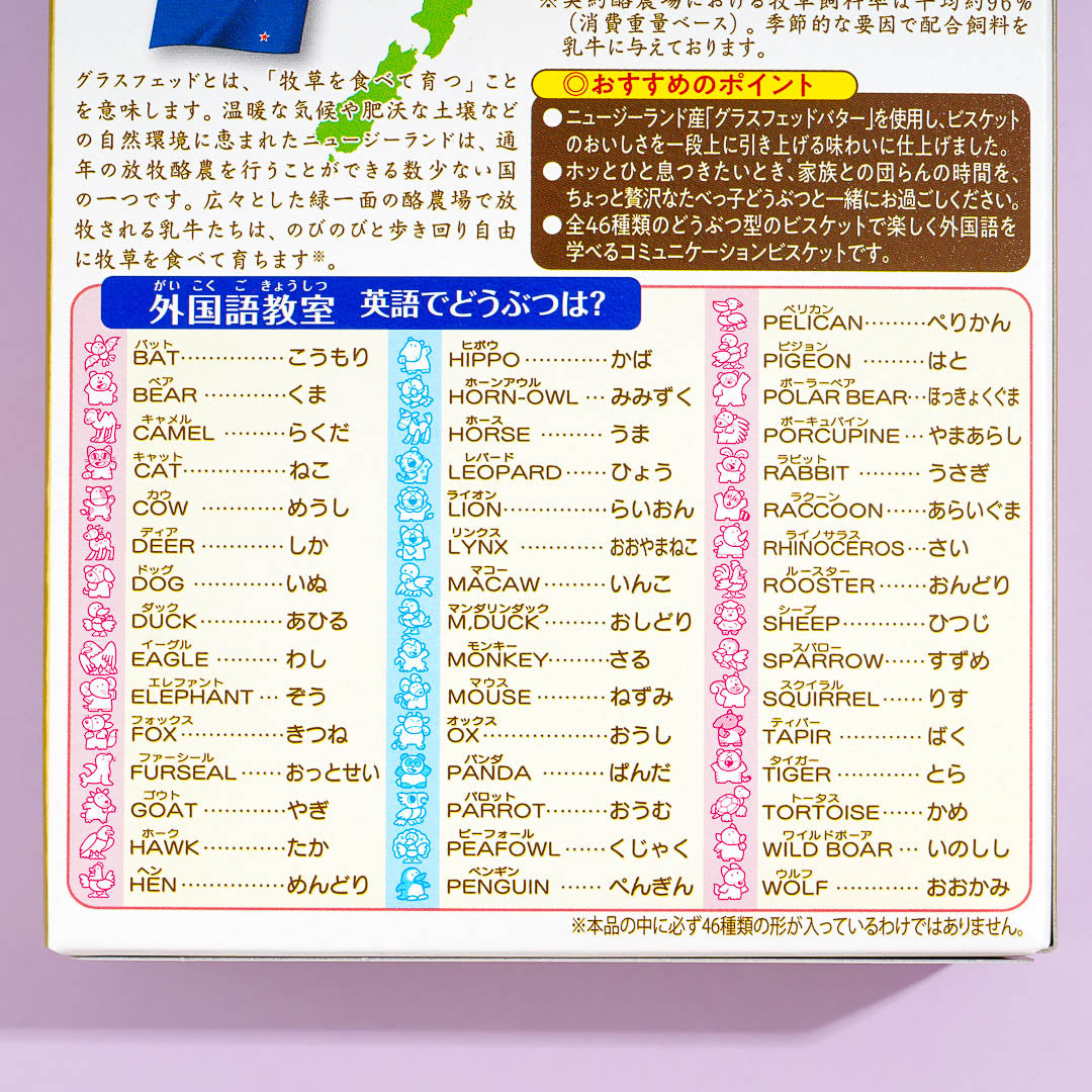 Have fun munching on these animal-shaped biscuits while learning animal names! Each piece features a rich, high-quality butter flavor and has a print of the animal's English name.