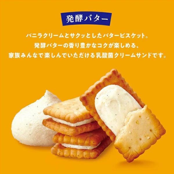 Improve your digestion by snacking on this box of biscuit sandwiches made of fermented butter-style biscuits! Each piece has a creamy center made of buttermilk with lactic acid bacterium to help give you a healthier and happier stomach. It also has added dietary fiber!