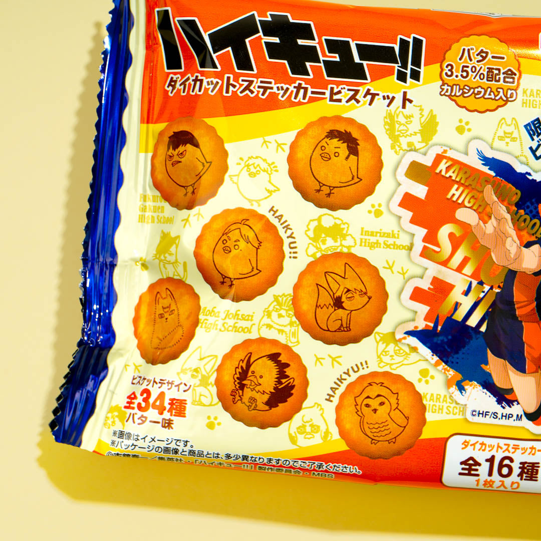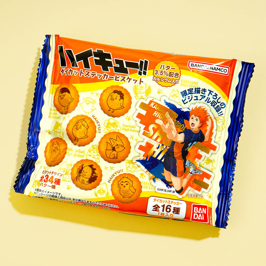 Enjoy these yummy biscuits that have cute prints of characters from the anime "Haikyu!!" They also come with a die-cut sticker featuring kawaii illustrations of the popular sports anime.