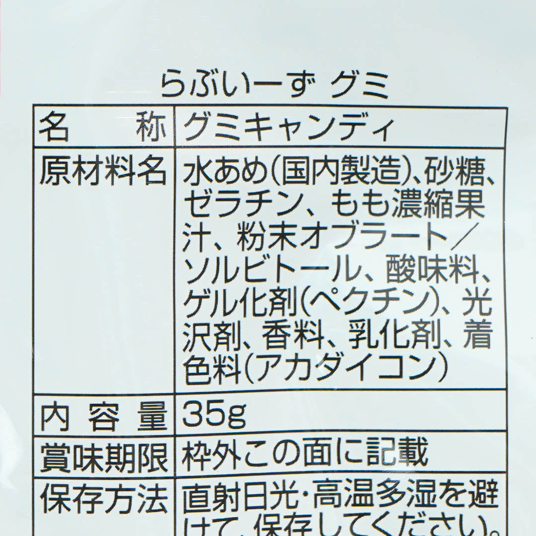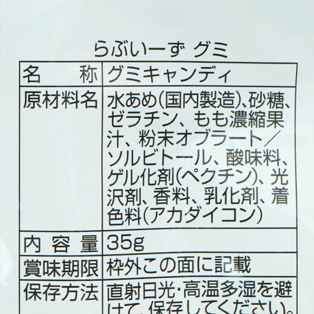 Enjoy munching on this peach-flavored gummy candy! It's shaped like Sumoppi and Pyonchi, the cute Loveez characters. This gummy comes in a resealable pouch!