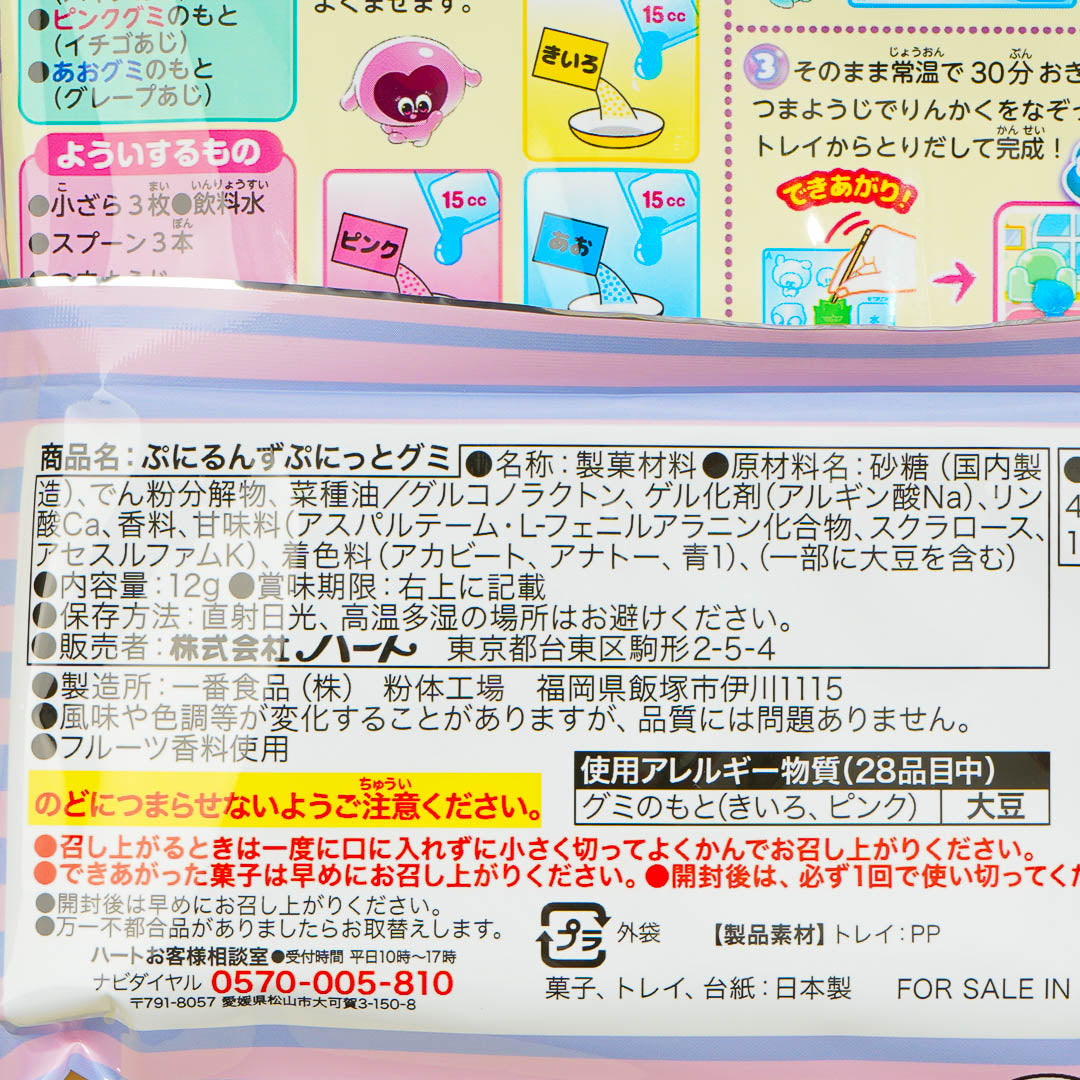 Have a blast creating colorful gummies that are shaped like Punirunzu characters using this DIY kit! Simply dissolve the powder packets in water and let them set on the provided mold. You can even mix powders to create more colors! The set also comes with a backing board with an illustration of Punirunzu’s living room so you can create your own gummy candy diorama afterward!