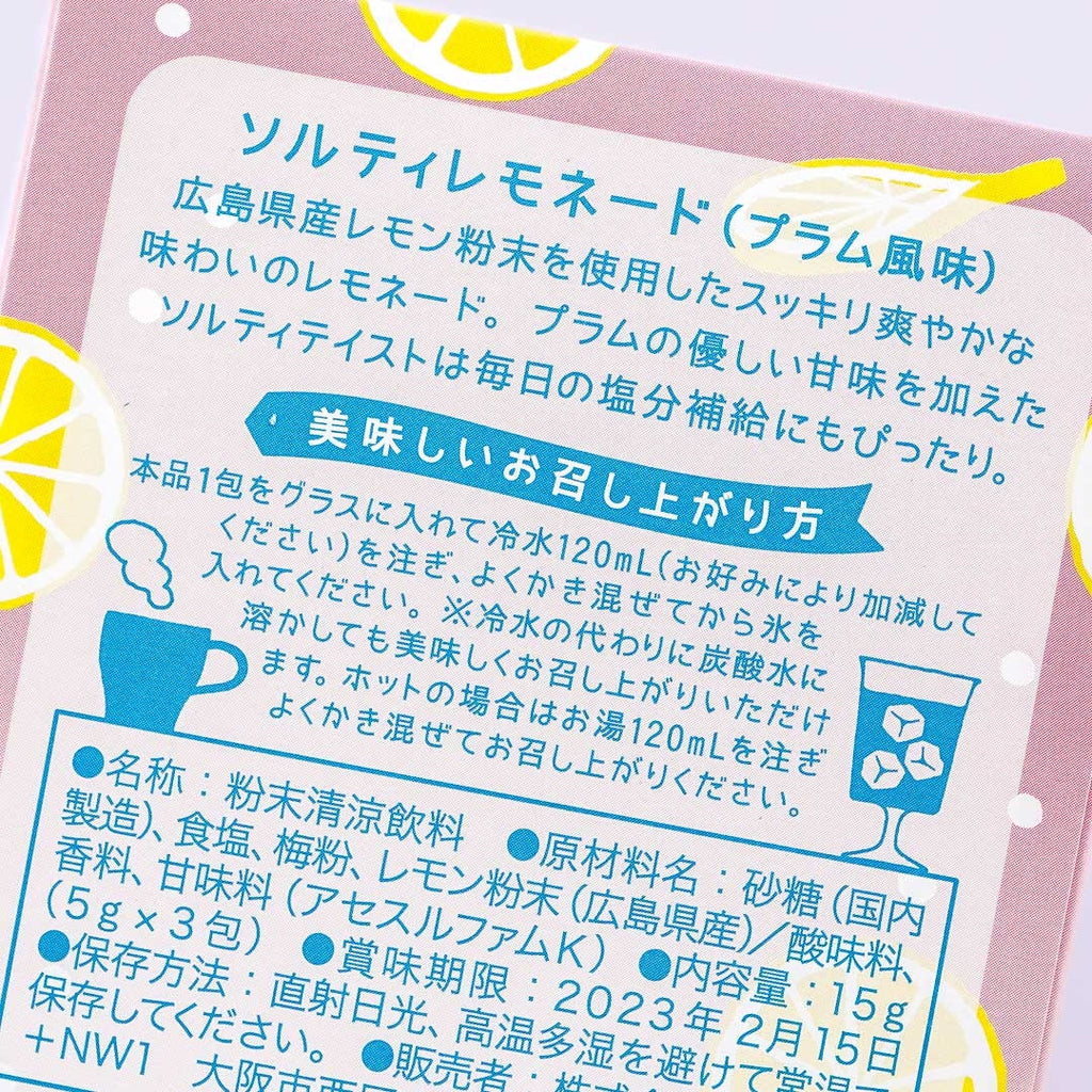 Have a nice refreshing break by making yourself a cup of lemonade with this bag of lemonade powder! It has three packets that you can use to make hot or cold lemonade enhanced with a bit of salt. The powder is made with lemons from the Hiroshima prefecture.