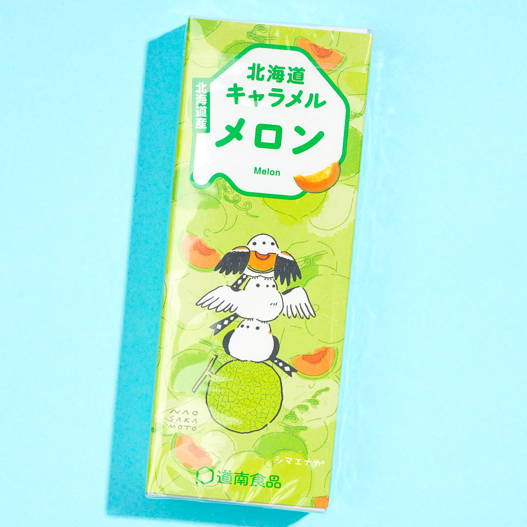 Enjoy the delicious taste of Hokkaido melons with this chewy candy! It's made with melon powder with a mild sweetness. The packaging also features the long-tailed tit, an animal from Hokkaido.