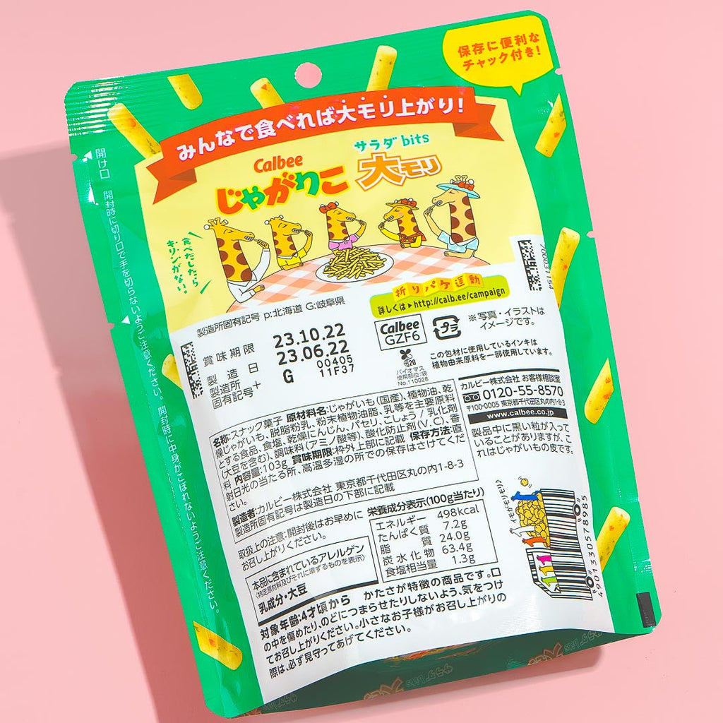 Now you can share this large pack of yummy stick-shaped potato snacks with your friends. Each piece tastes like a delicious bowl of salad! Bring this snack pack to picnics or take it out during parties.