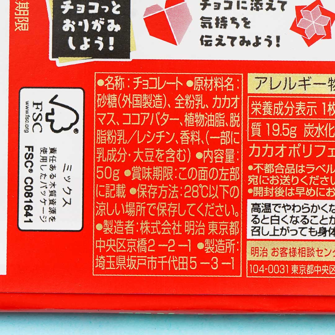 Meiji is Japan's most famous confectionery company, and it has been producing chocolate bars since 1926. This creamy and extra milky chocolate bar is divided into squares with "Meiji" imprinted on each one. Delicious!