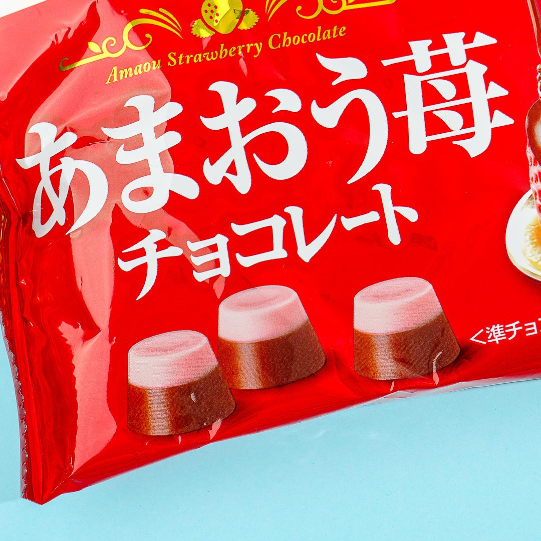 A pack of flat-top cone chocolates made of Amaou strawberry chocolate and mellow chocolate
