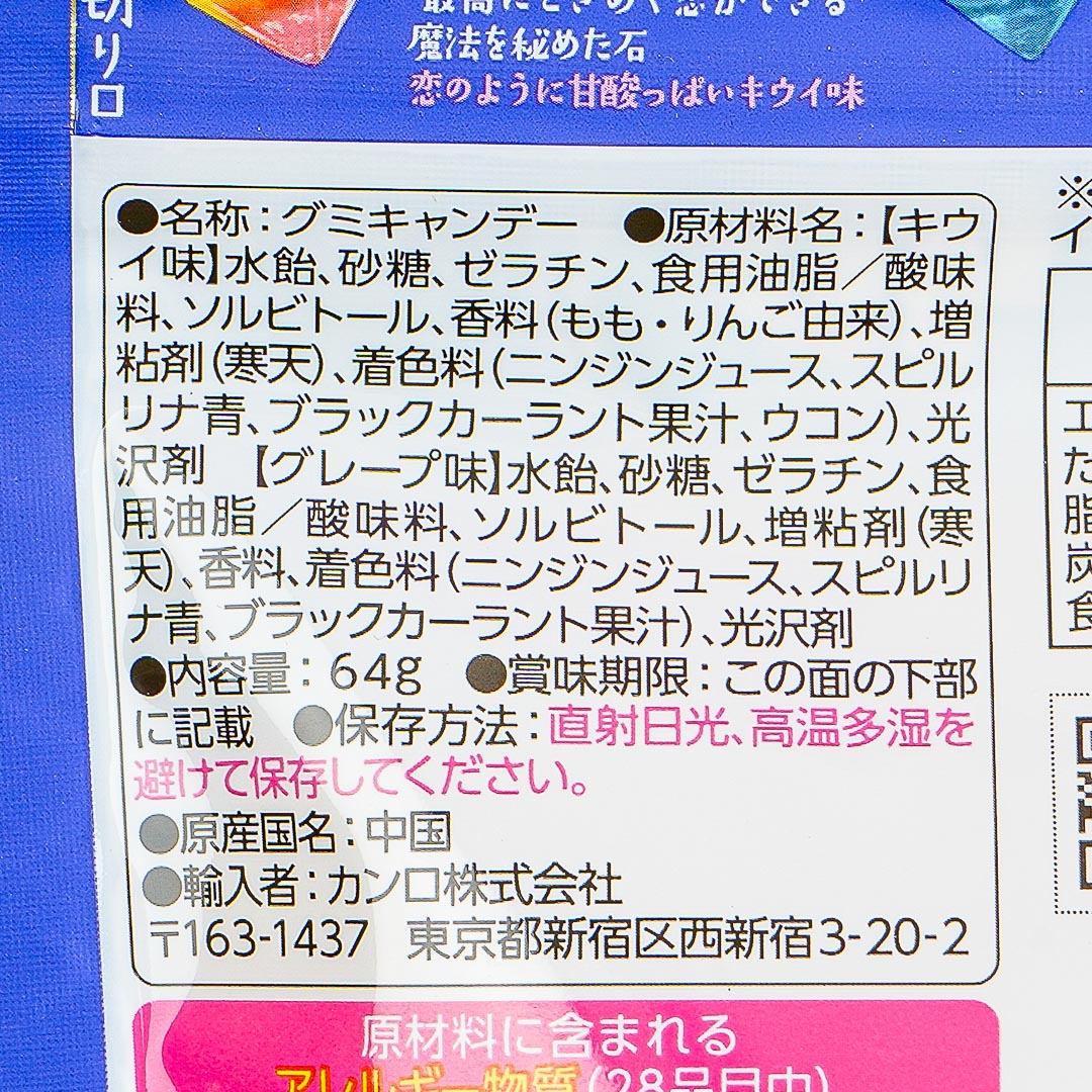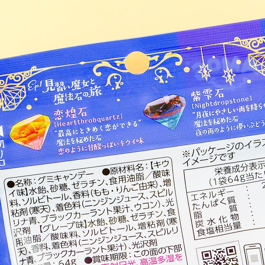 Add this pack of diamond-shaped gummies to your candy bin! Each piece looks like magical jewel that's sparkling with magic. There are two different kinds of jewel candies in the pack - hearthrobquartz with kiwi flavor and nightdropstone with grape flavor.