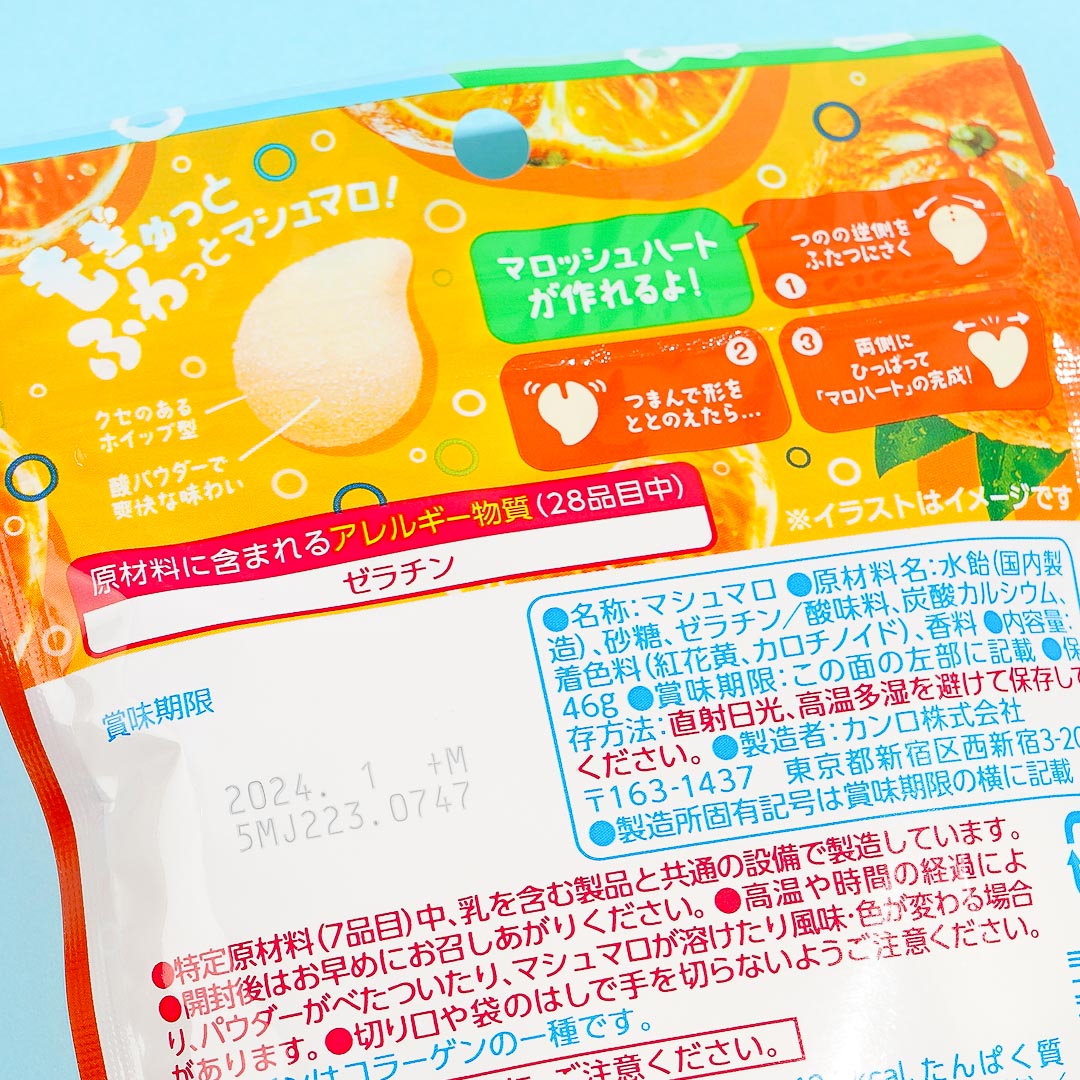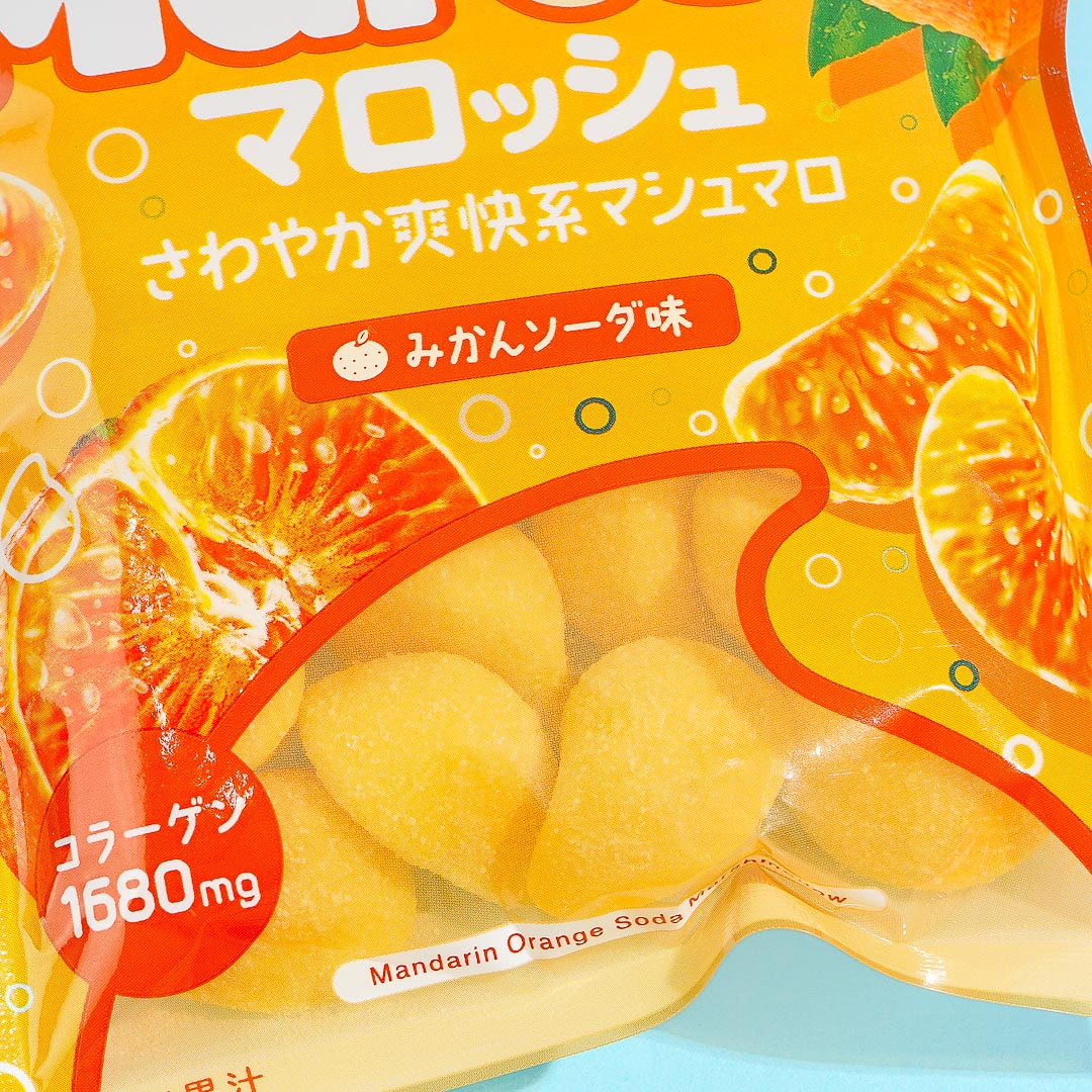 Enjoy this resealable pack of marshmallows while on your break! Each piece has a slightly sweet and sour taste of juicy Mandarin orange soda. The texture changes from fluffy to chewy when you put it in your mouth!