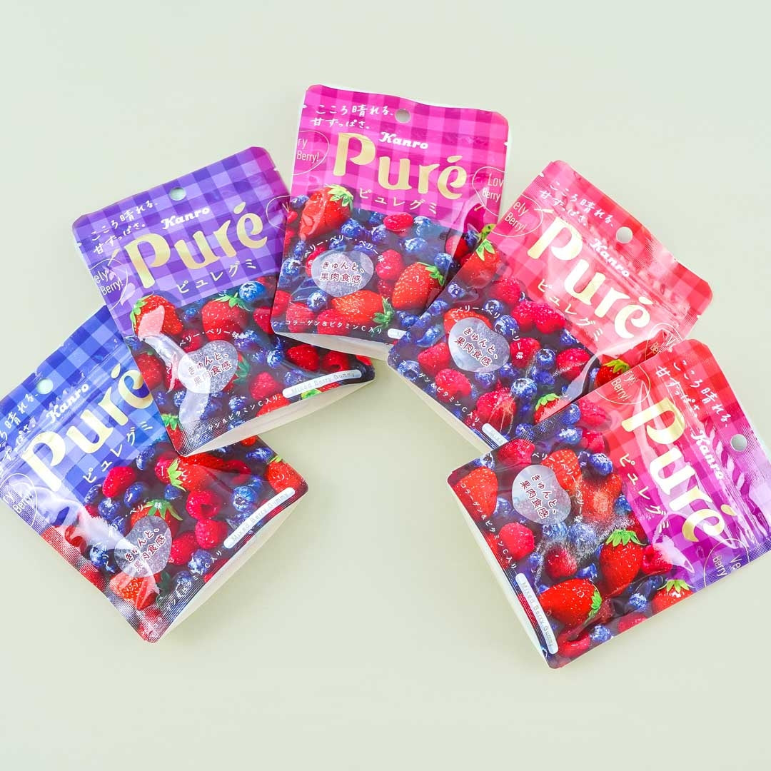 Let your mouth twitch over these tangy gummies that are flavored with a mix of blueberry, strawberry, and raspberry — and are generously coated with sour powder! Each heart-shaped piece has a pink and a purple-colored half. You’ll get random resealable packaging with a plaid design out of five colors when you order.