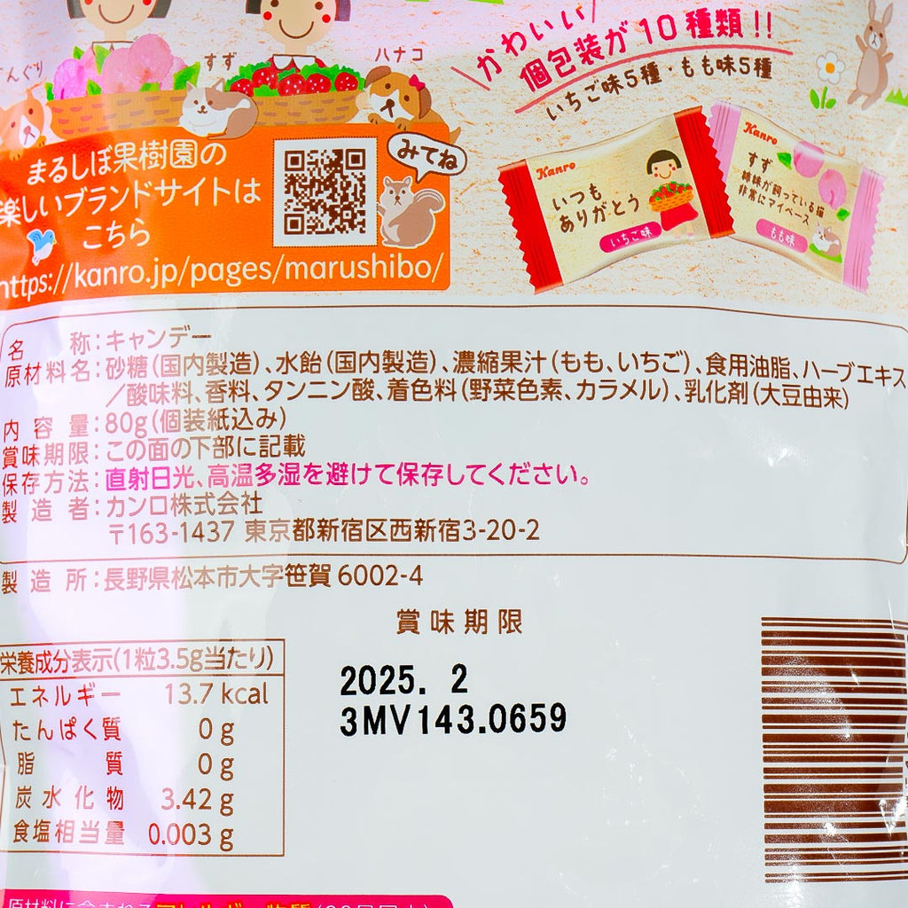 Kanro Whole Squeezed Fruit Throat Candy - Strawberry & Peach
