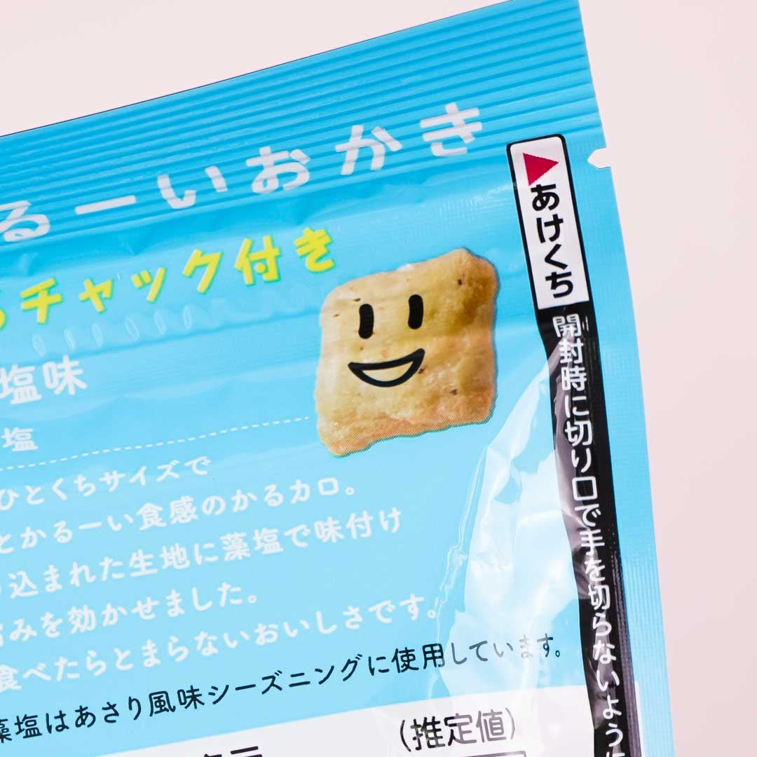 A resealable pack of fried rice crackers mixed with kelp and seasoned with asari salt