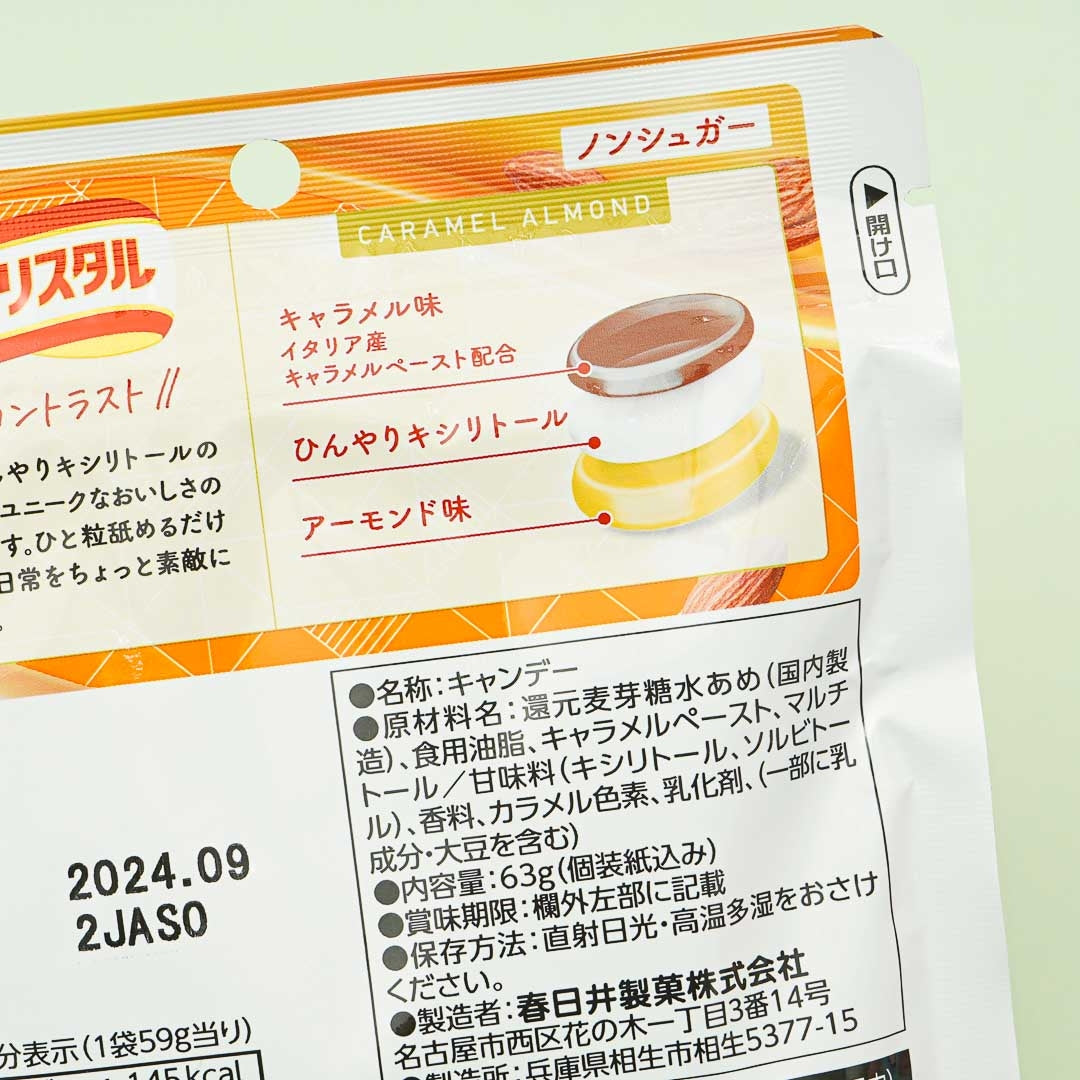 A pack of sugar-free hard candy that combines the taste of caramel and roasted almonds