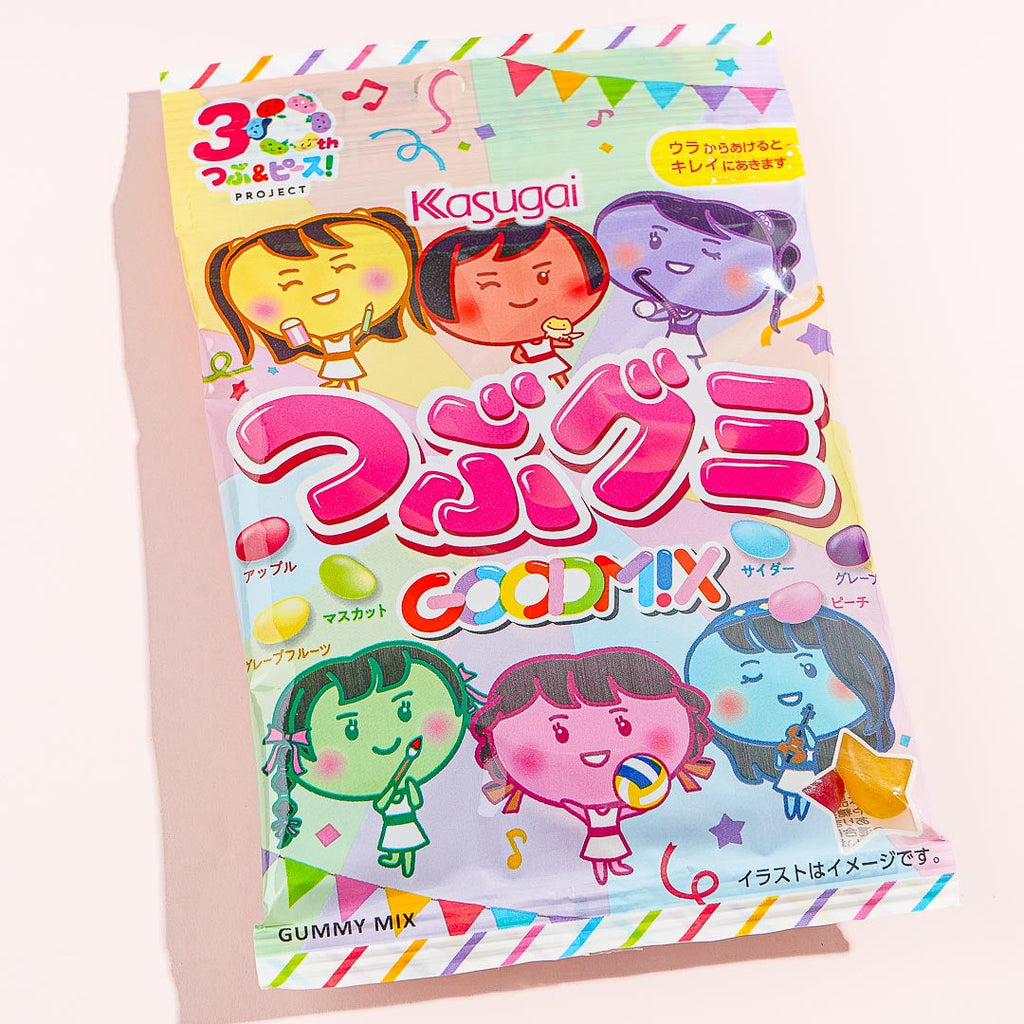In celebration of the 30th anniversary of Tsubu Gummy, Kasugai came up with a special bag of delicious gummy candies and formed a special girl group called “GOODM!X.” You’ll get a random special packaging featuring a member of GOODM!X when you order!