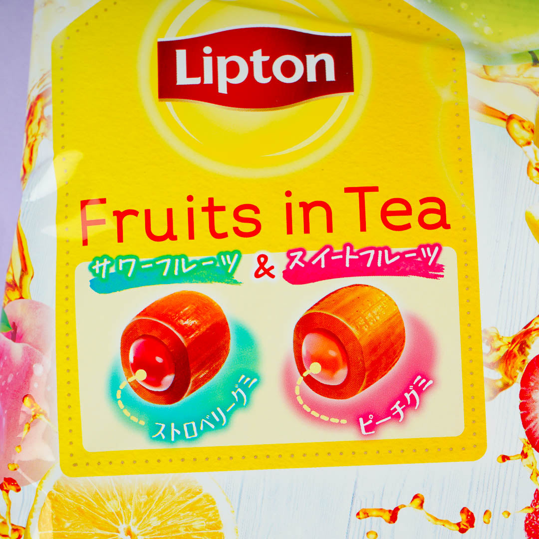 Enjoy trying out these fruit tea-flavored sweets! Each black tea-flavored candy has a gummy center that tastes like sweet and sour fruits. These treats are a collaboration with the famous tea brand, Lipton.