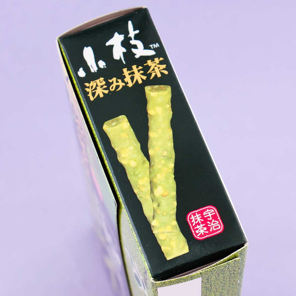 These Koeda or small twig-like cookie sticks are coated with strong matcha green tea chocolate. The fukami or deep matcha taste goes well with the sweet biscuits, making these oh so irresistible! Coated with tiny biscuits, you're in for an extra crispy and flavorful treat!