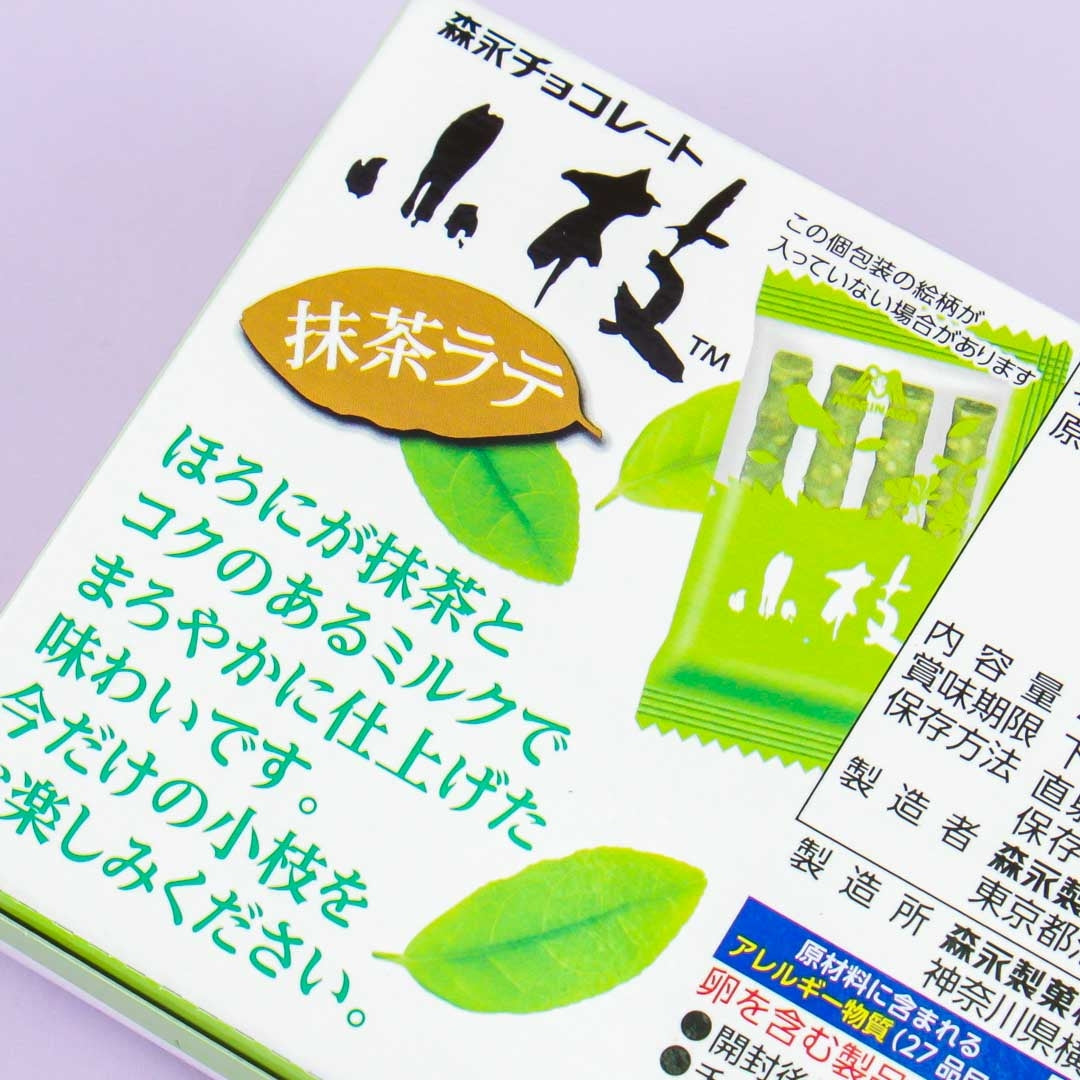 These yummy twig-shaped chocolate snacks are embedded with biscuit bits to make them more crunchy! Taste the flavor combination of bitter green tea and sweet milk in every bite.