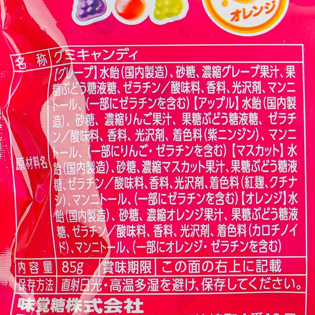These yummy gummy candies are perfect for snacking. Each piece is made with 100% fruit juice. Try out the grape, muscat, orange, and apple flavors of this bag of chewy treats! Make sure that you keep the resealable bag closed to keep your candies nice and fresh.