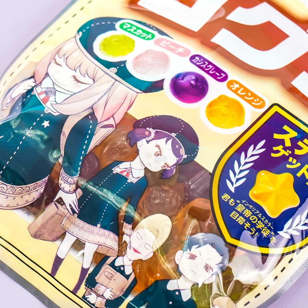 • A pack of round-shaped gummy candies with cassis grape, peach, muscat, and orange flavors