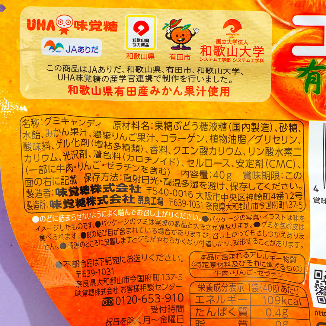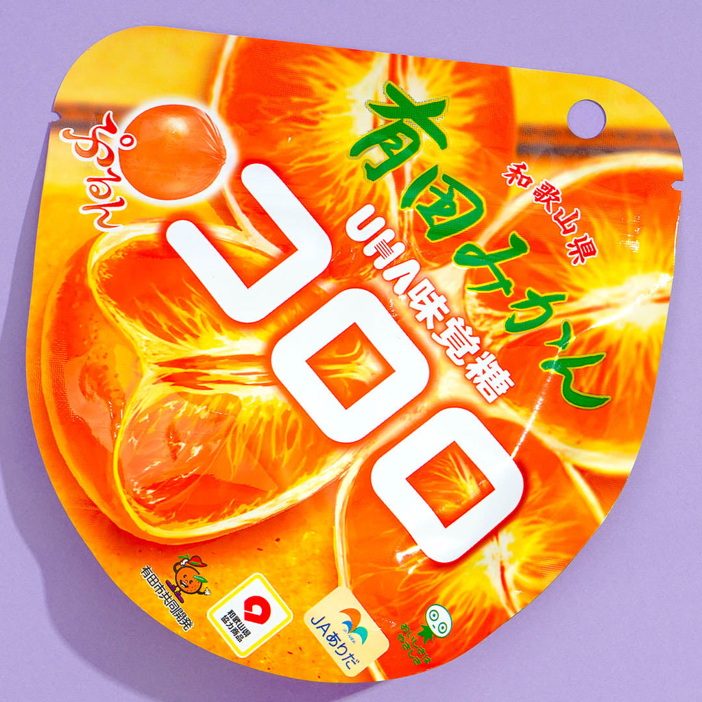 Get your sugar rush with this pack of juicy gummy candies! Each piece is made with fresh fruit juice from Arida Mika mandarin oranges from the Wakayama Prefecture in Japan. They have a bouncy, poppy texture that makes it feel like you're eating fruit.