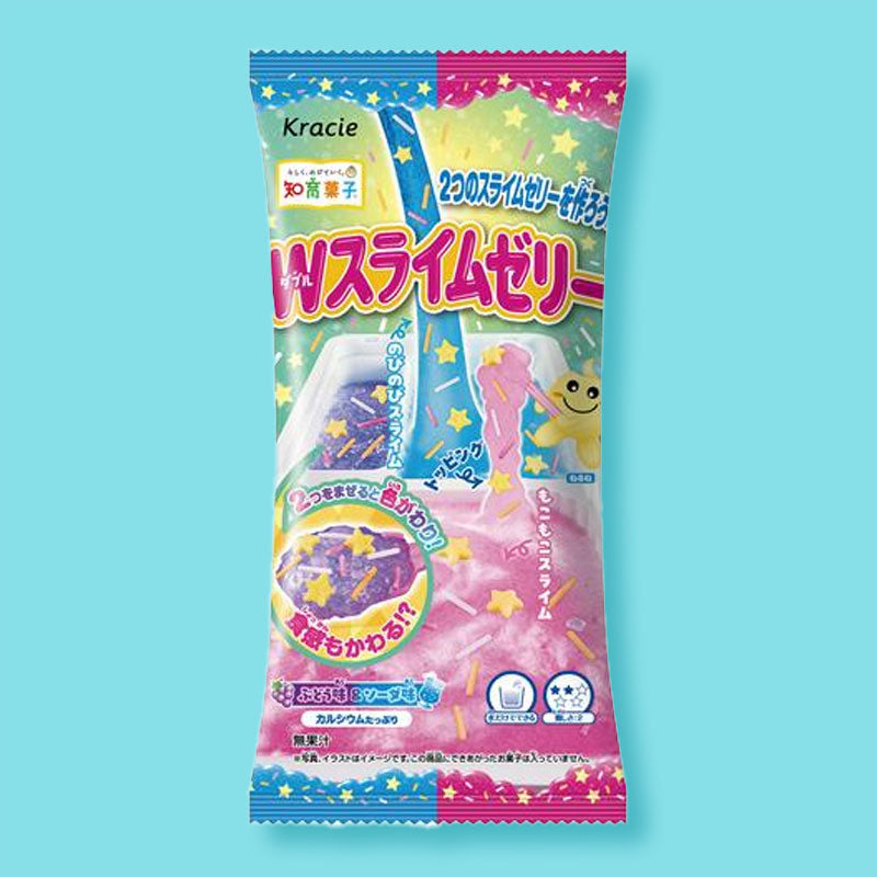 Create your own squishy and slimy jelly candy with this DIY candy kit! Just mix the included powders with water to form long, stretchy jelly slabs in grape and soda flavors. Top them with candy sprinkles for extra fun, or combine both jellies to watch the color and texture change.