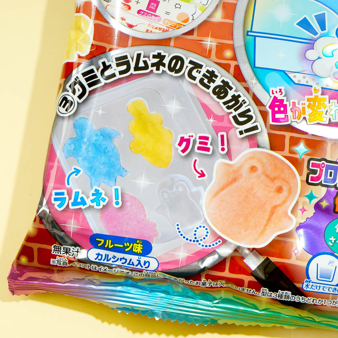 Ramune is a popular carbonated soft drink in Japan. Now you can make your own ramune candies and gummy with this DIY kit. Follow the instructions in the manual to make the candies. Depending on the combination of the ingredients, you can make the color of the candy change! Have fun answering the quiz in the instruction booklet.
