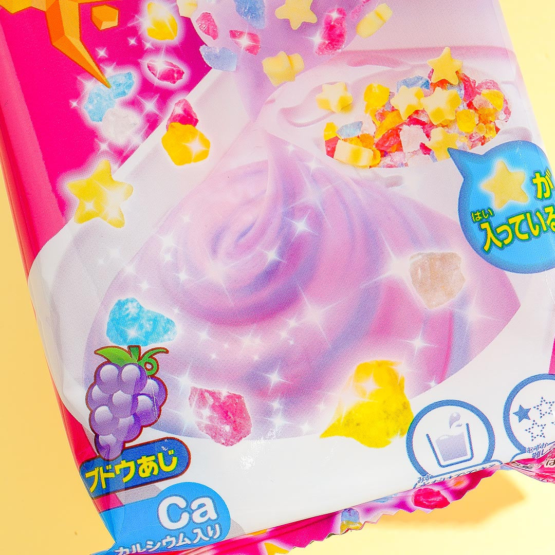 This do-it-yourself kit is a fun and easy way to make your own Nerunerunerune grape candy with ramune topping! Just add water and mix the ingredients. There are no artificial color additives or preservatives so it is 100% safe for children, and even contains calcium! This set is great fun for children and adults alike. The package includes all the necessary ingredients, tools and instructions.