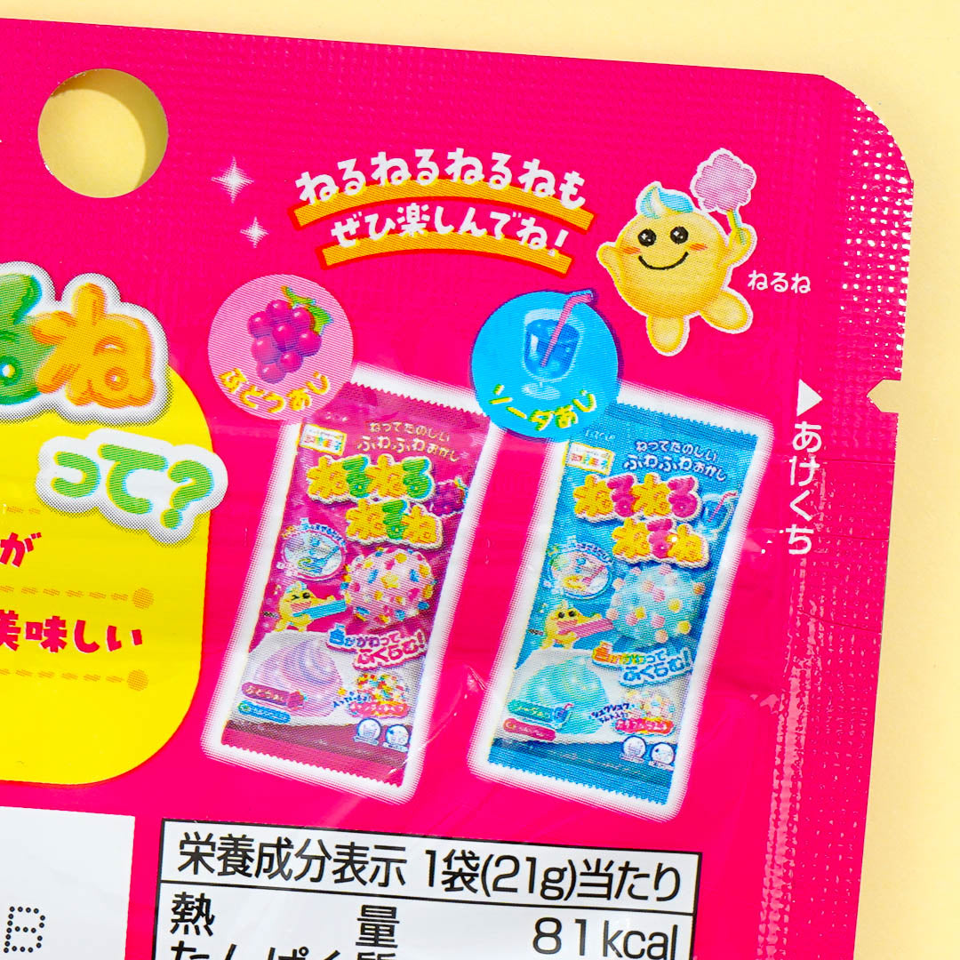 Enjoy the taste of the popular Nerunerunerune DIY candy in ready-to-eat ramune candy form—no water or mixing required! This bite-sized version features grape and soda flavors with an extra fizzy kick.