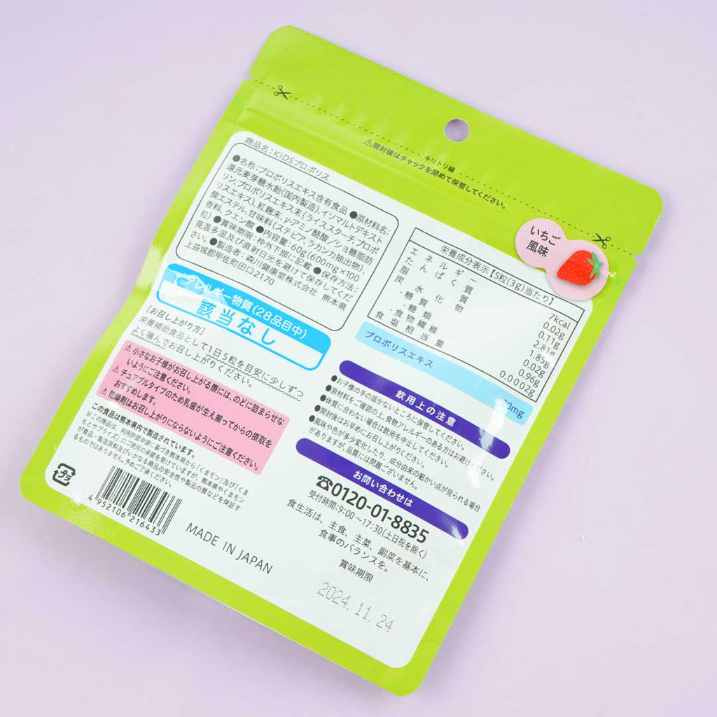 Savor the taste of fresh sweet strawberries as you try these chewable supplements! These tablets do not contain sugar, artificial flavors, or preservatives. Its packaging features the famous black bear mascot of Kumamoto Prefecture, Kumamon!