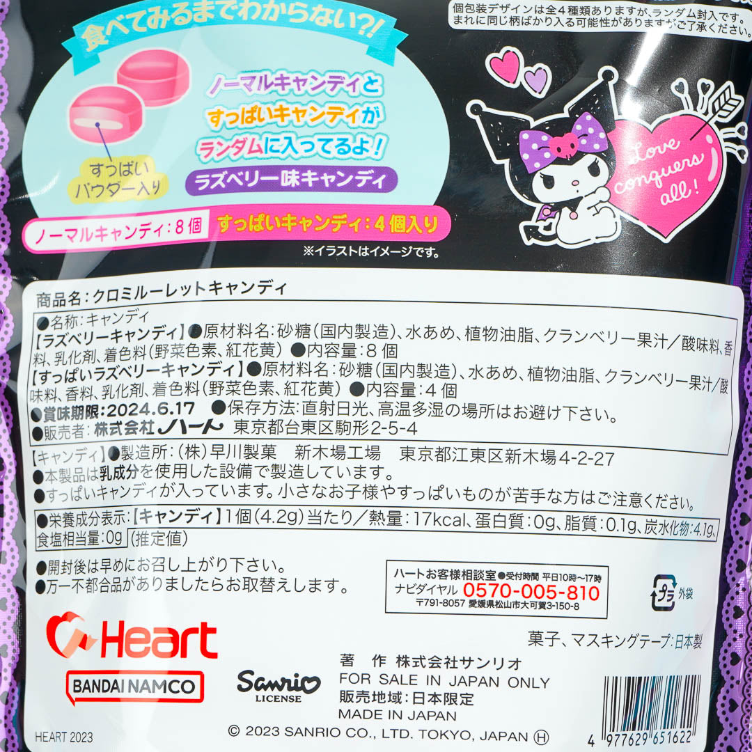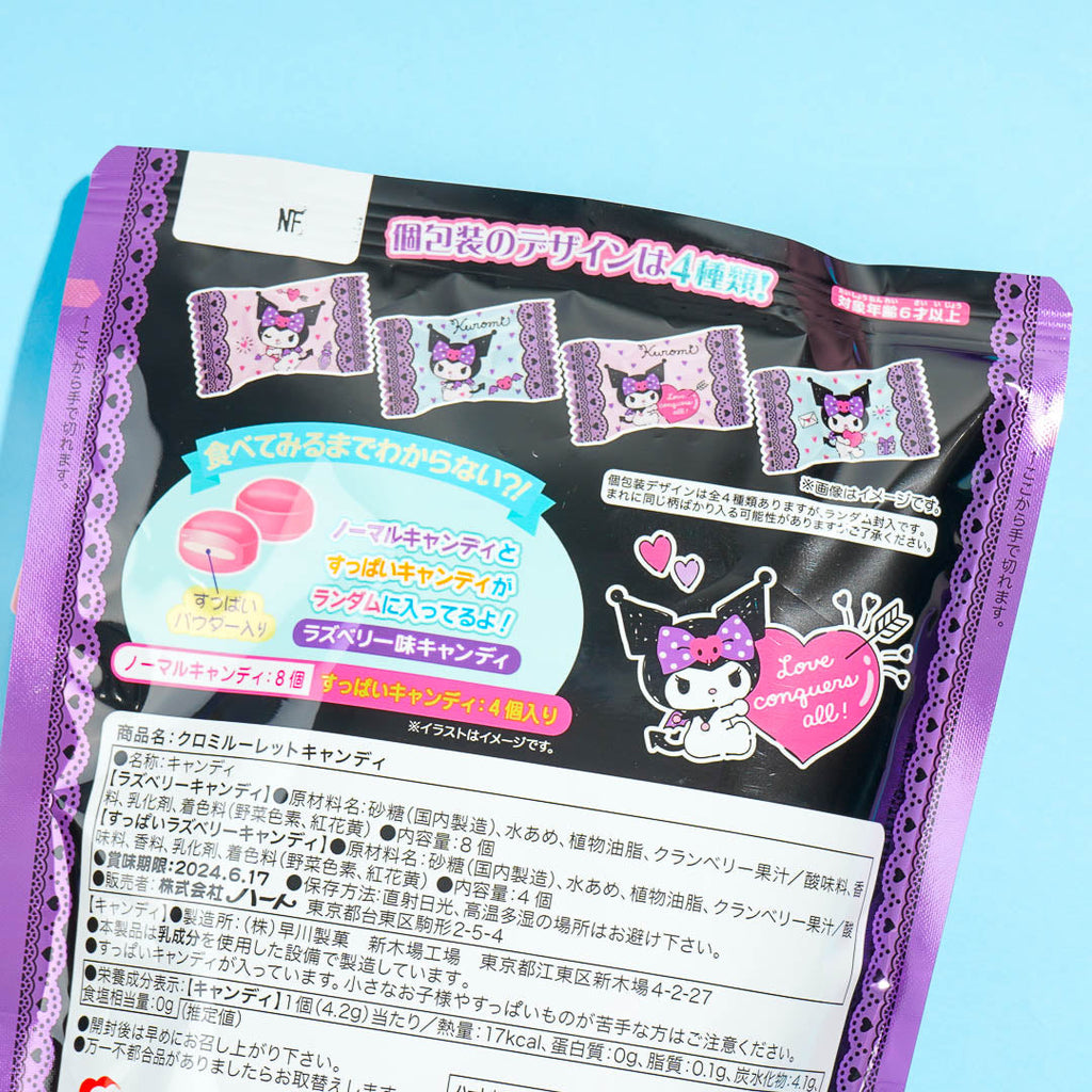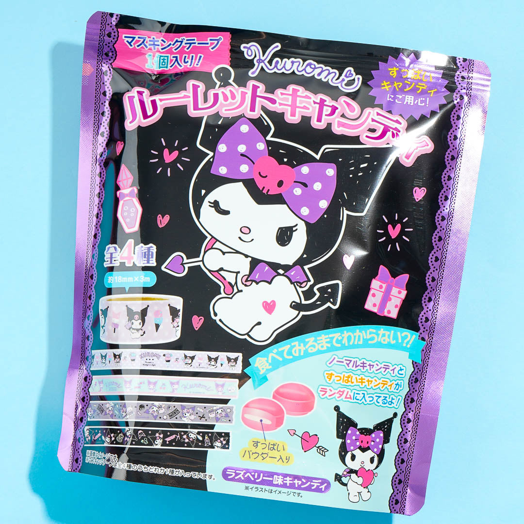 When you grab this pack of candies, you're in for a surprise! The little candies are peach-flavored but some are filled with sour powder. This pack also comes with a cute masking tape featuring prints of Kuromi.
