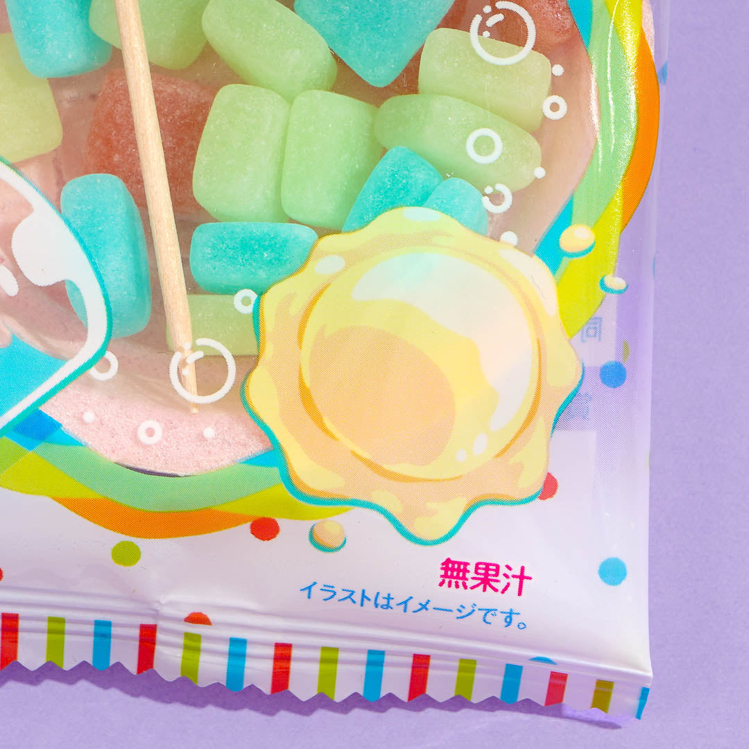 This chewy mochi candy comes in a fun monaka or wafer dish, just like the ones you'd find at dagashi shops! There's a mix of soda, melon soda, and cola flavors. Use the included toothpick to pick and enjoy the candy, and don’t forget to eat the monaka dish too!