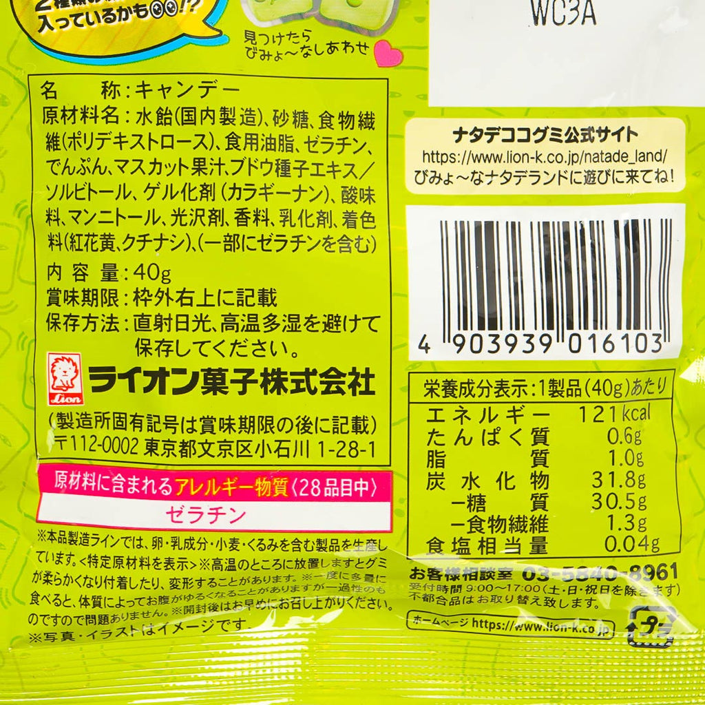 Munch on these chewy gummies on a hot day for an instant fruity refreshment! They combine juicy muscat grape flavor with real bits of nata de coco or coconut jellies for a unique texture and taste.