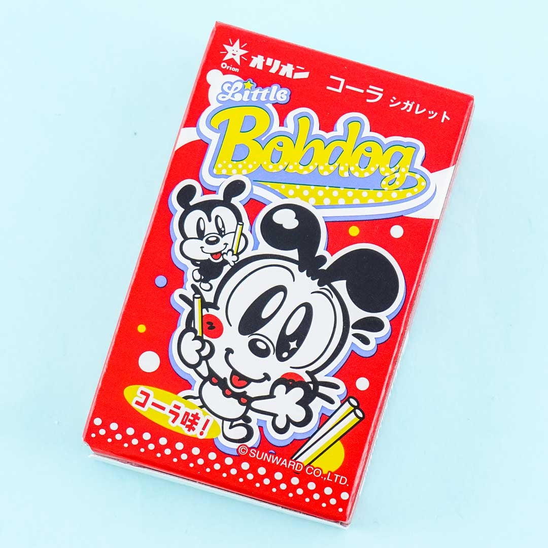 Treat yourself to this box of candy sticks! It features prints of Little Bobdog, a character that's been popular in Japan since the late 80s. Each piece has a sweet cola flavor.