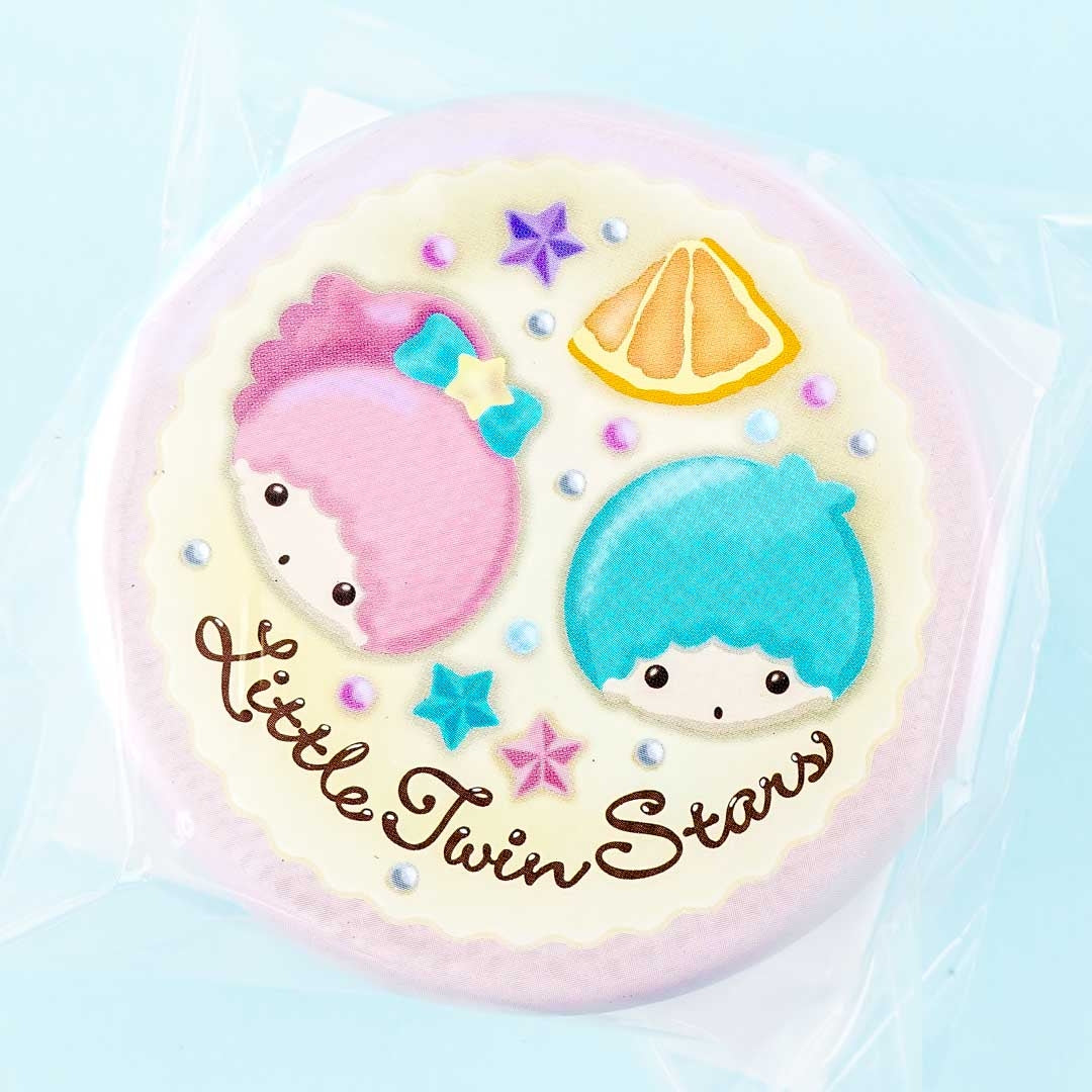 This super cute round-shaped can comes with luscious heart-shaped chocolates inside. It features prints of the Little Twin Stars with a beach sand background.
